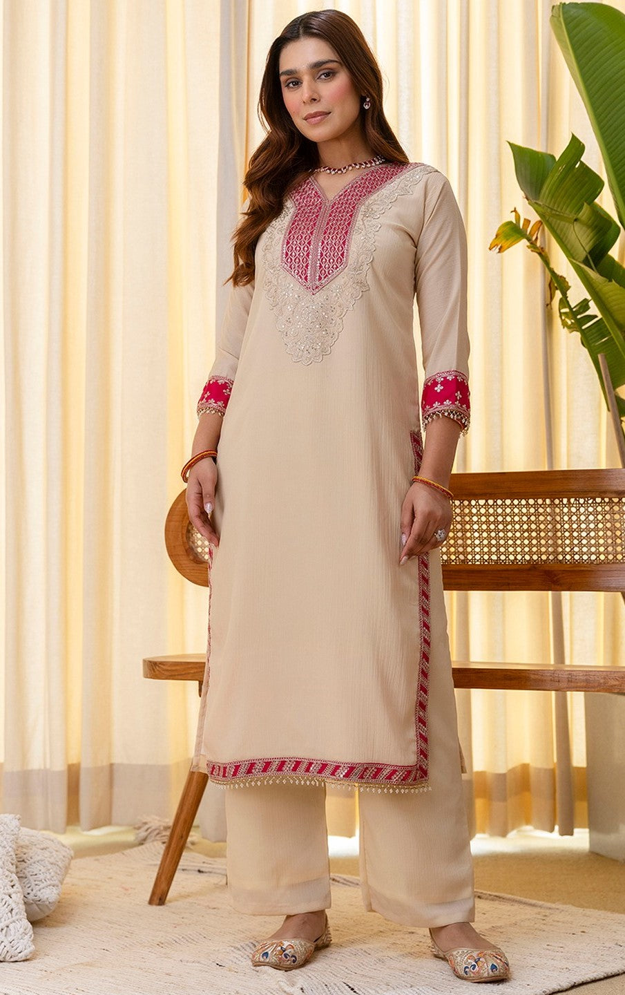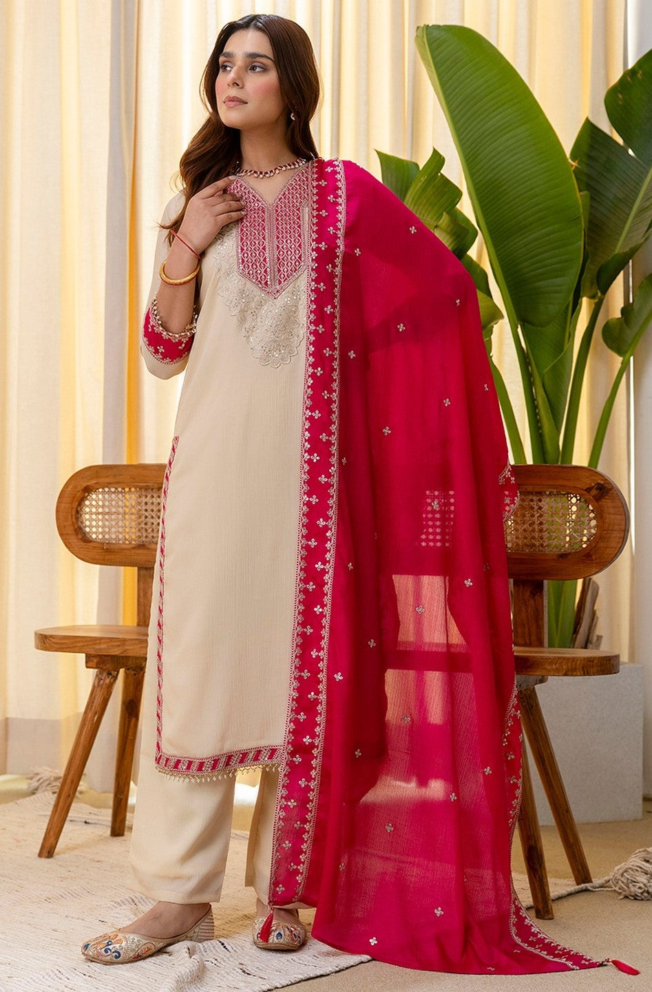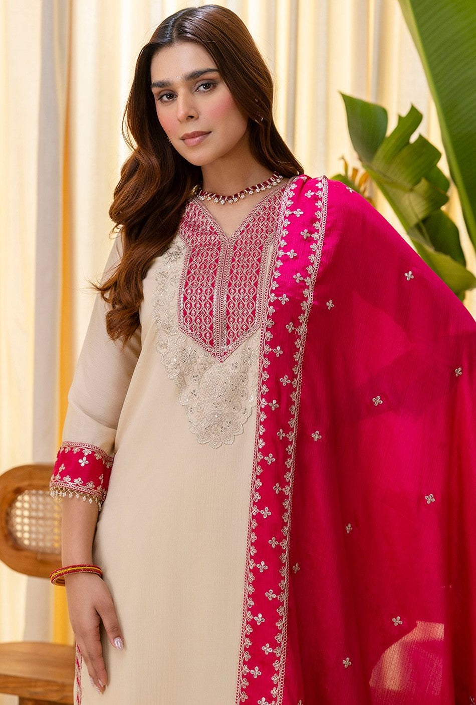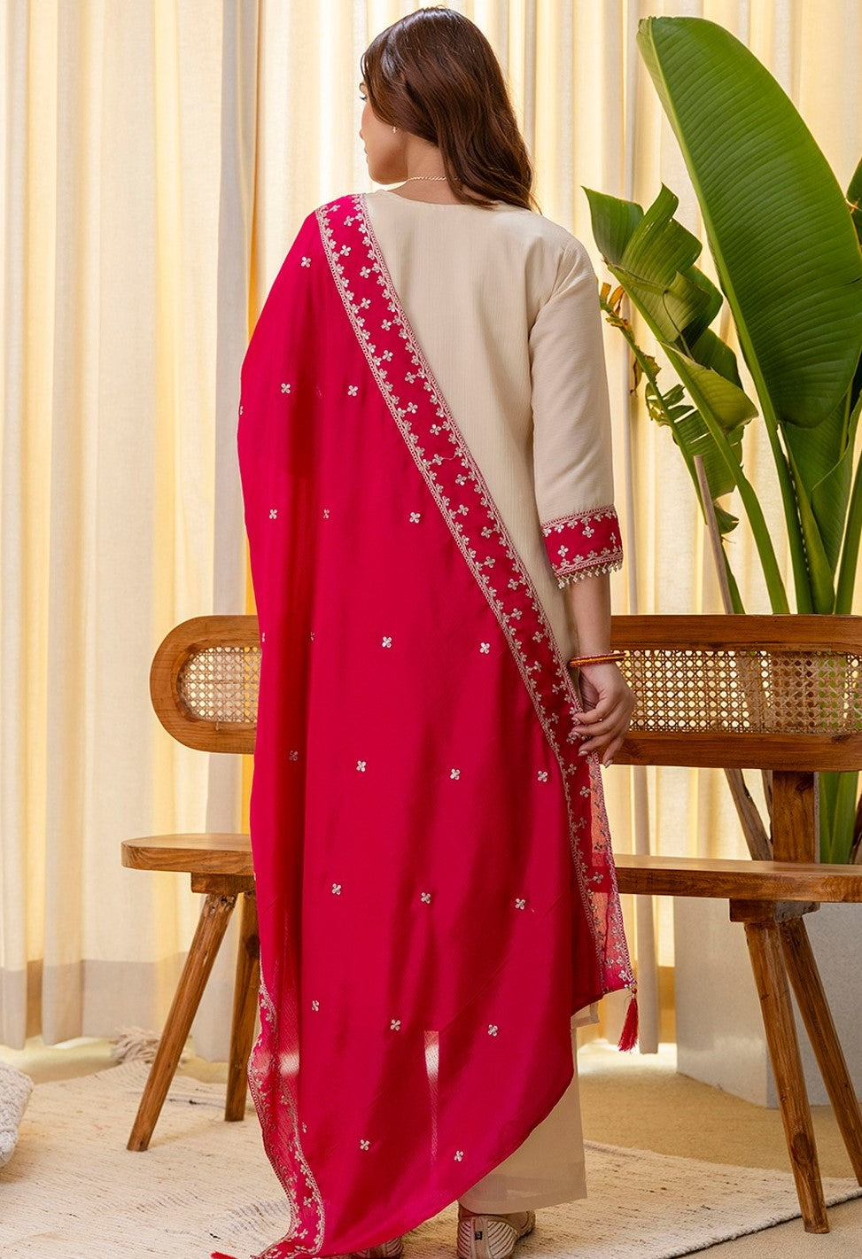 | Color | Top Color - Cream, Bottom Color - Cream, Dupatta Color - Pink |