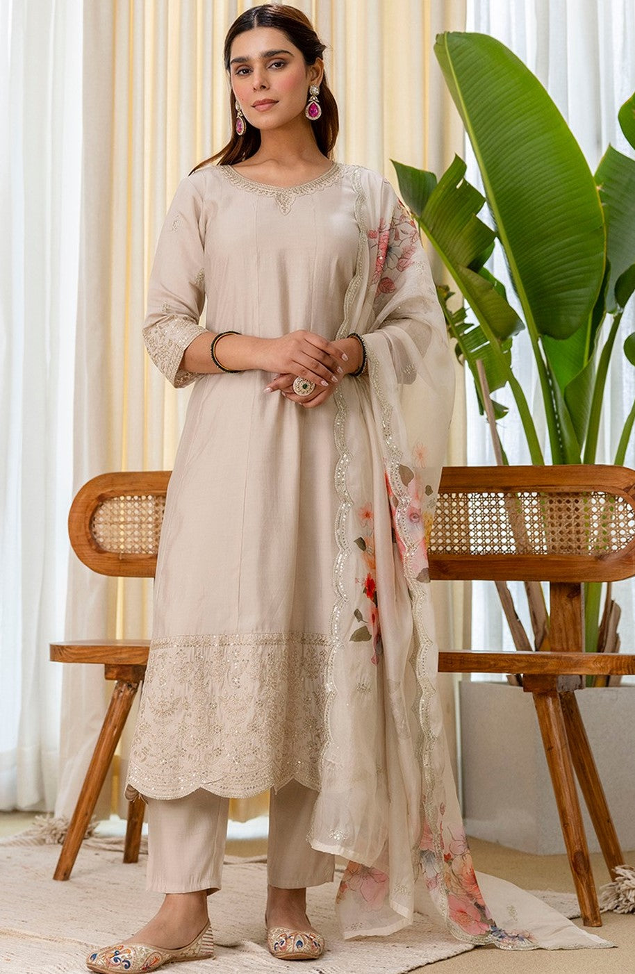 | Color | Top Color - Cream, Bottom Color - Cream, Dupatta Color - Cream |