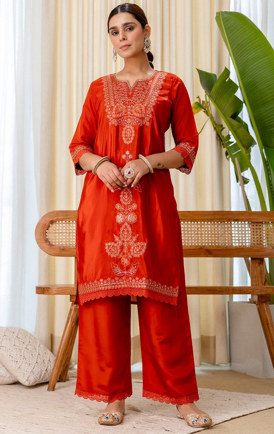 Lovely Orange Color Silk Fabric Designer Suit