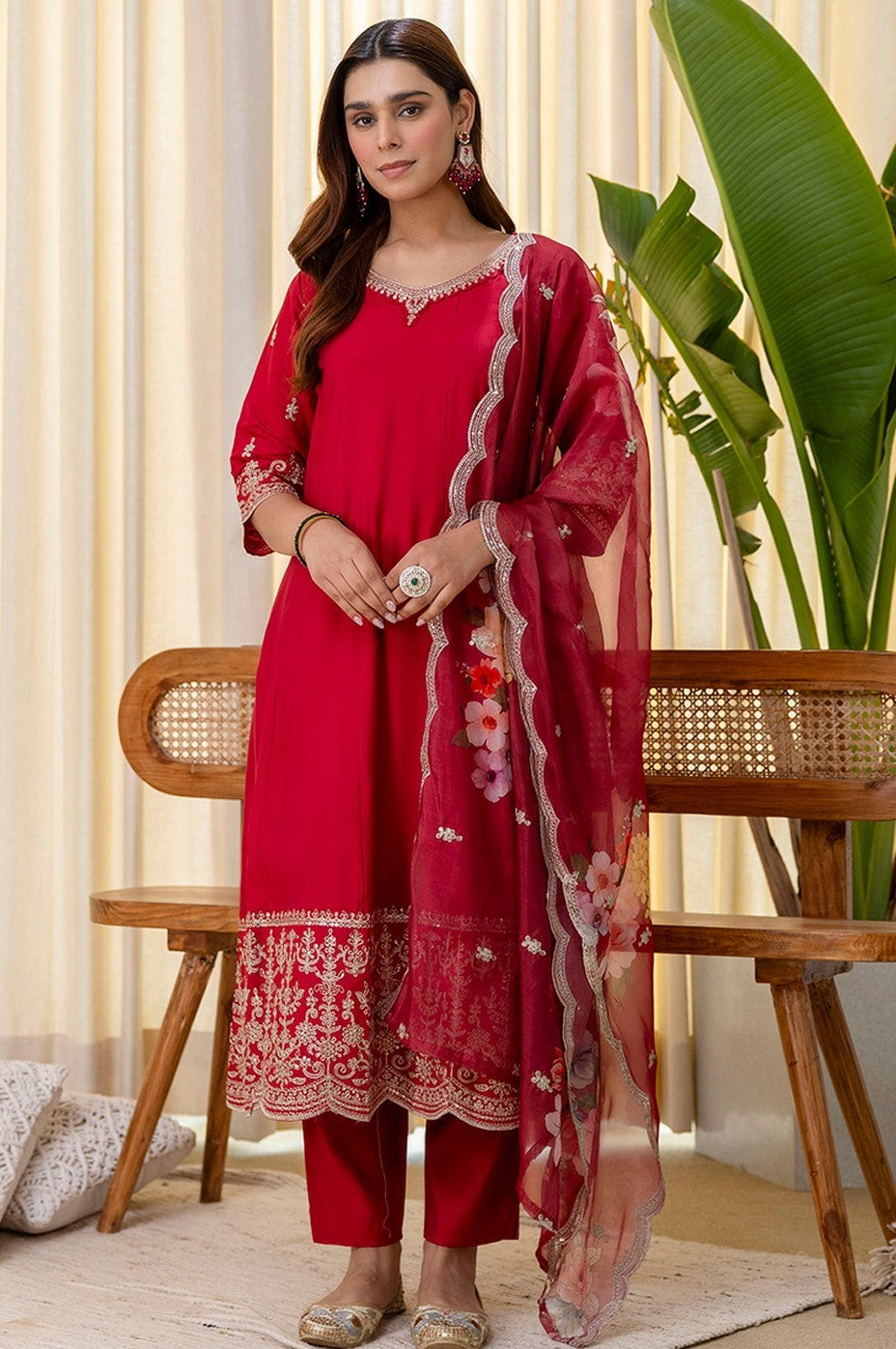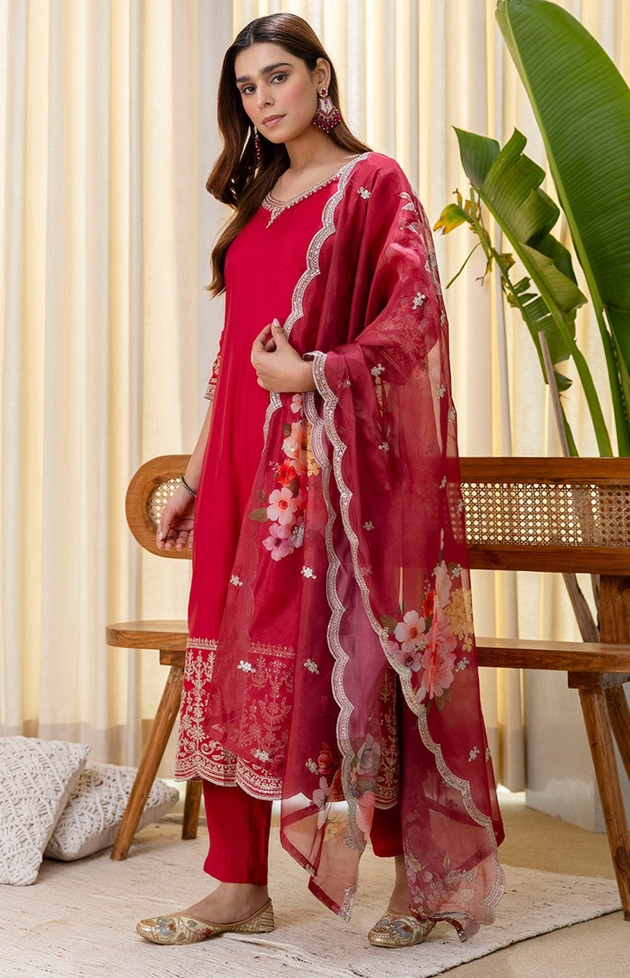 | Color | Top Color - Red, Bottom Color - Red, Dupatta Color - Red |