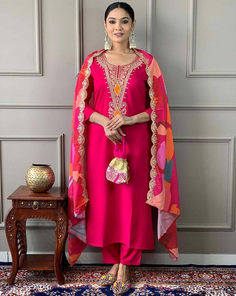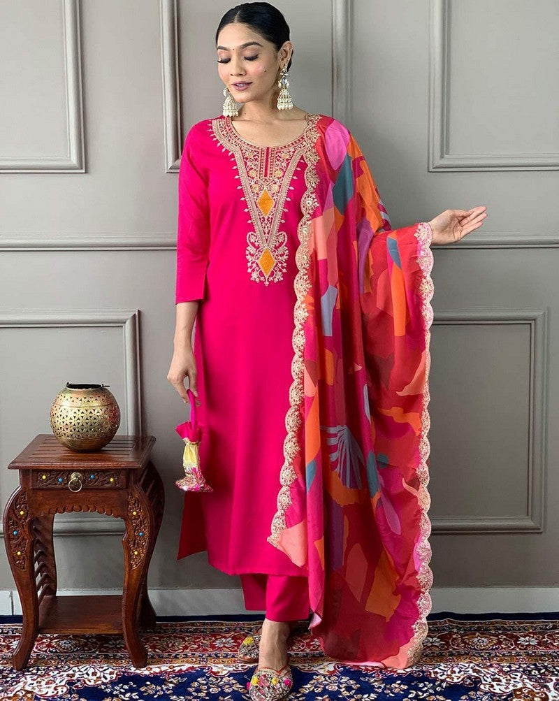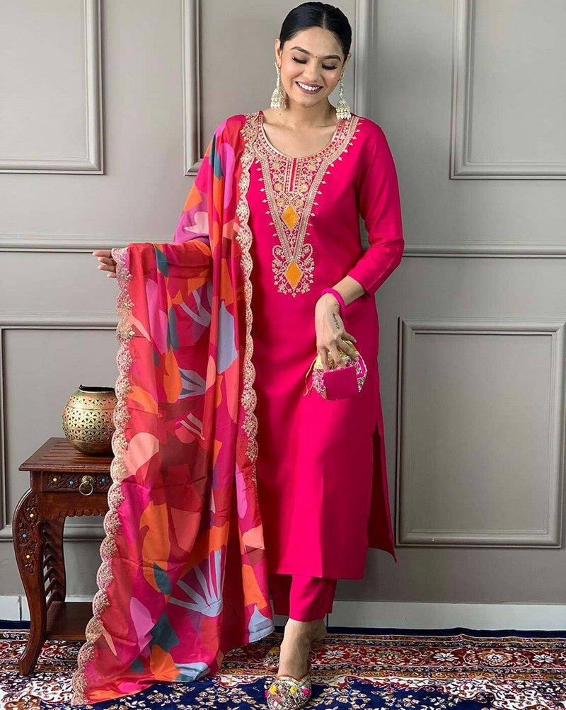 | Color | Top Color - Pink, Bottom Color - Pink, Dupatta Color - Pink |