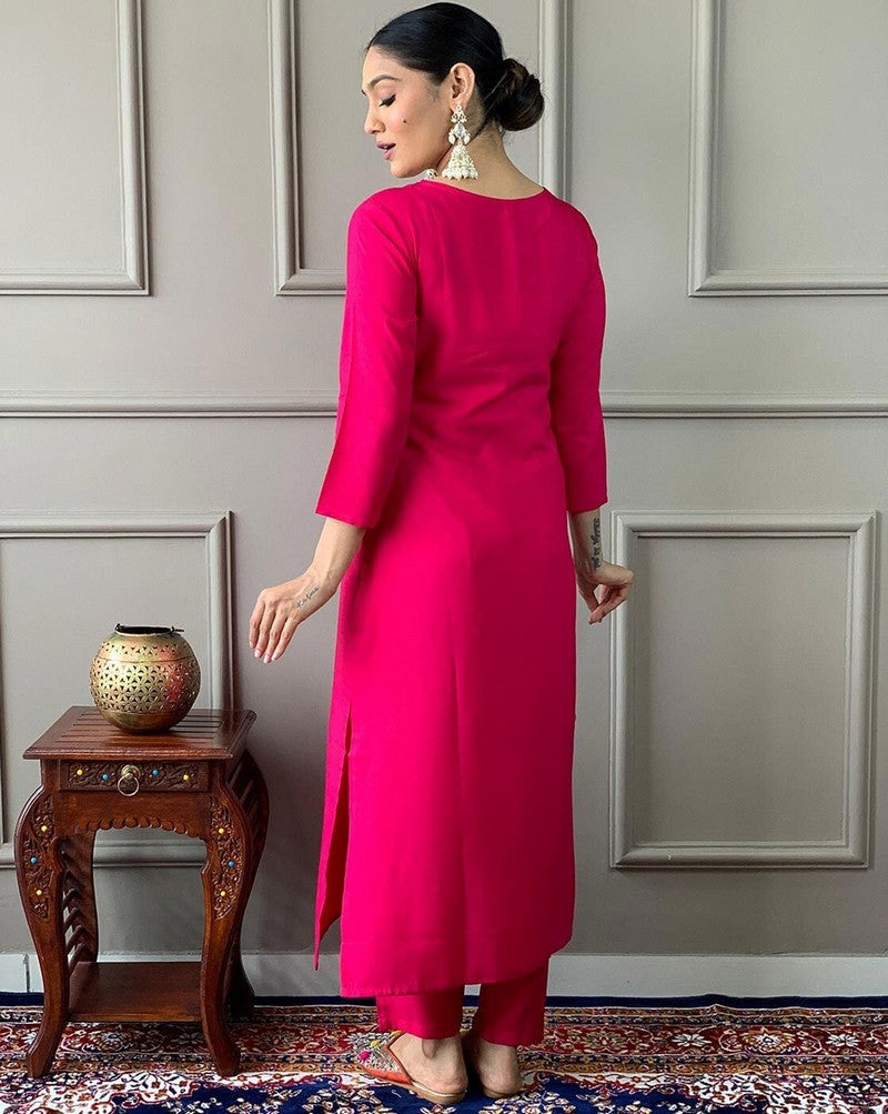 Tasteful Pink Color Cotton Fabric Designer Suit