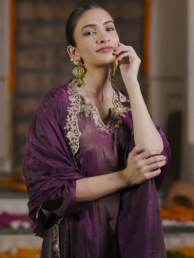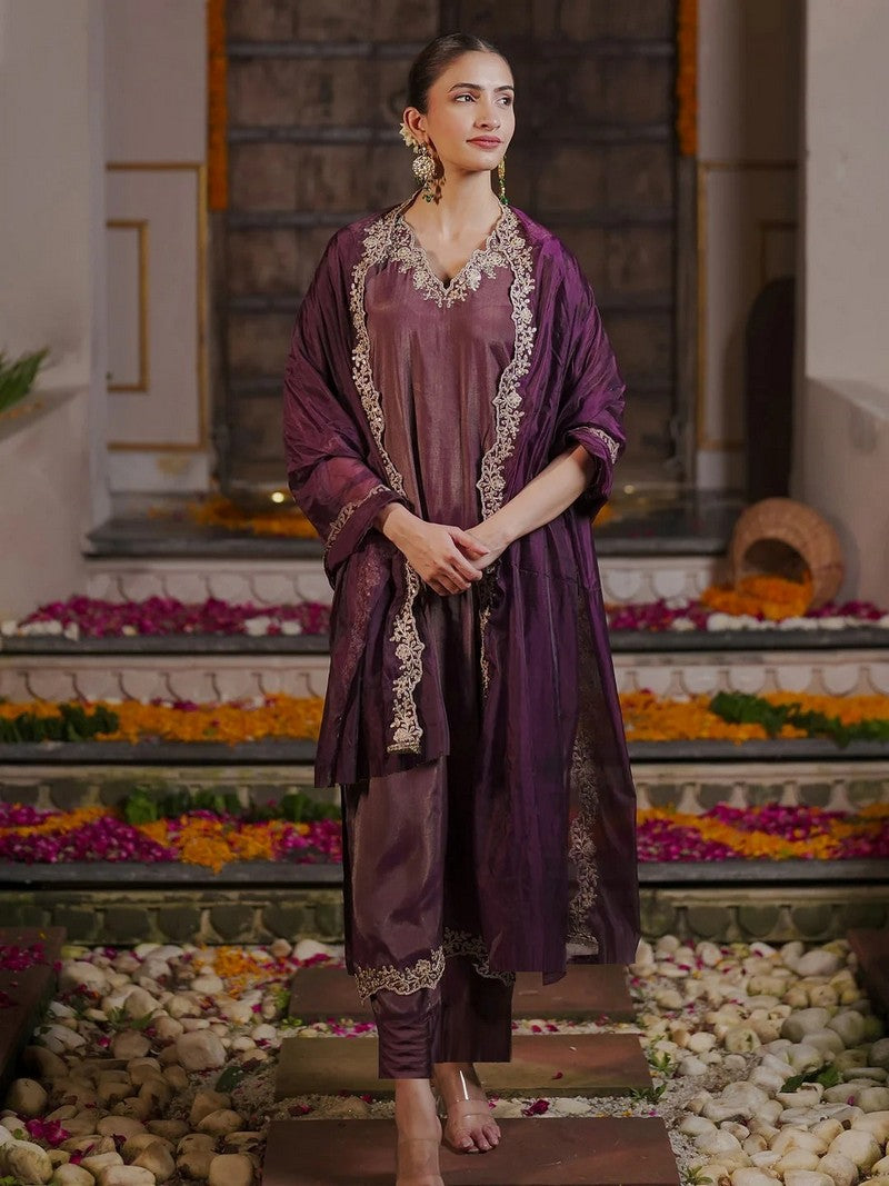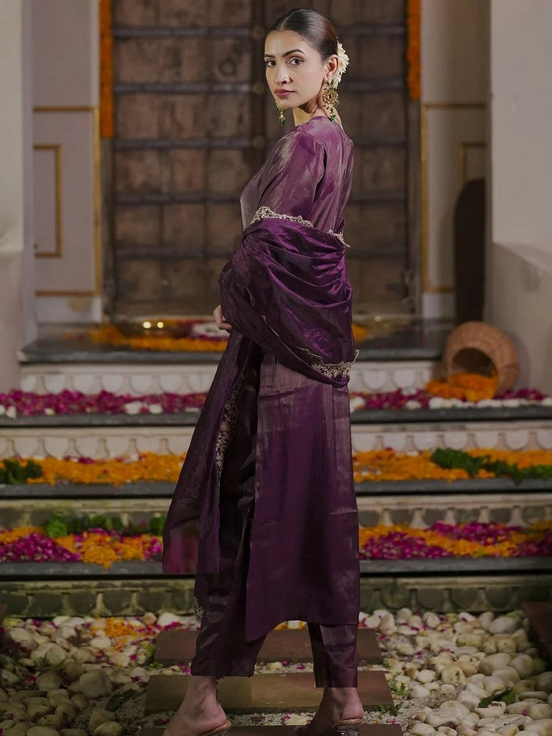 Tasteful Voilet Color Shimmer Fabric Designer Suit