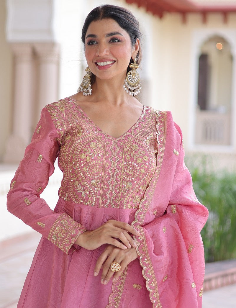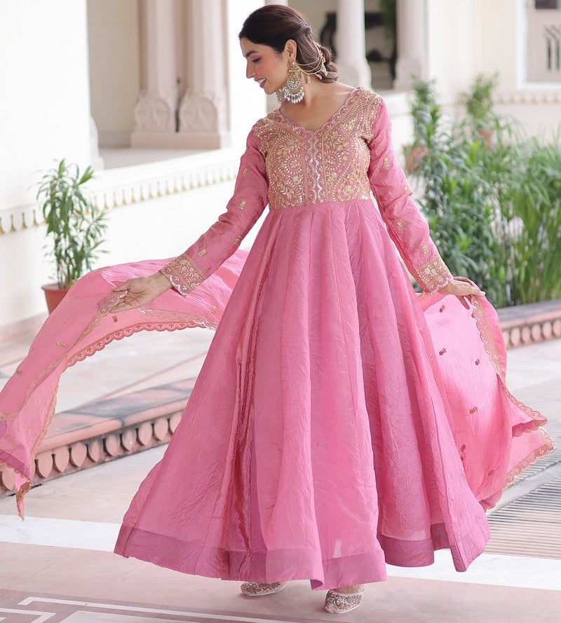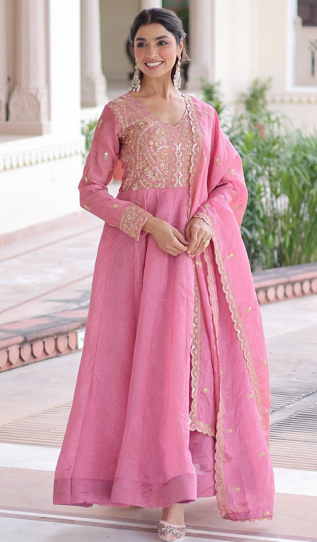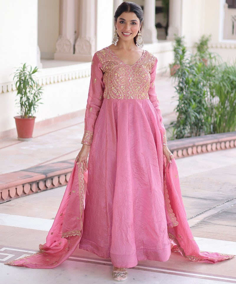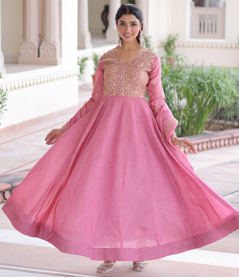 Amazing Pink Color Crush Fabric Gown