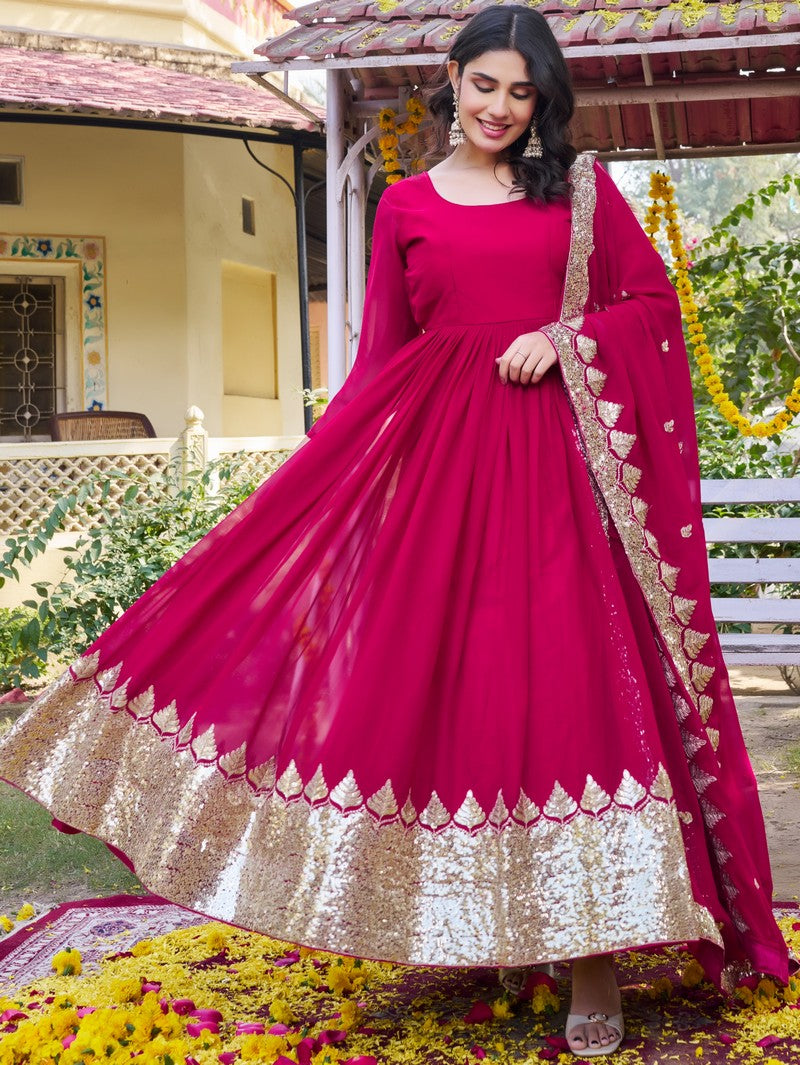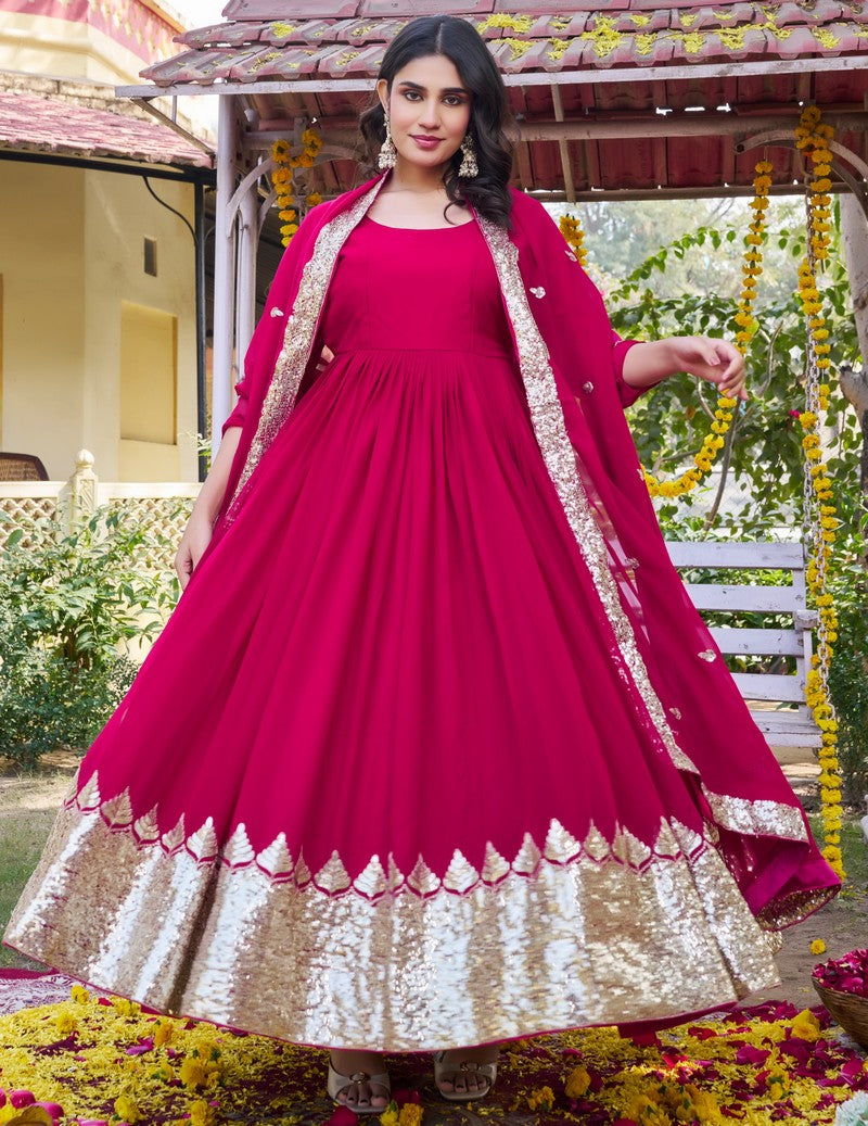 Attractive These Beautiful Looking Readymade Long Gown With Dupatta. Its Beautified With Designer Sequance Embroidery Work.