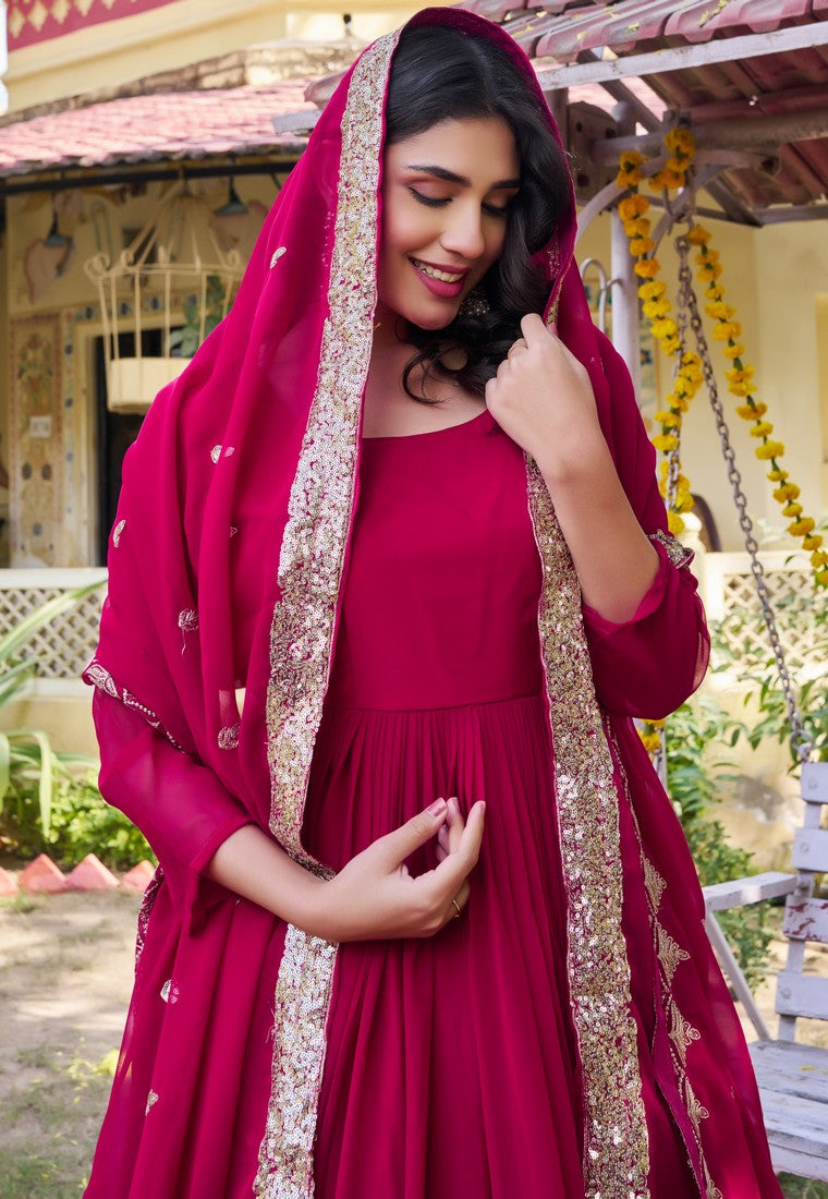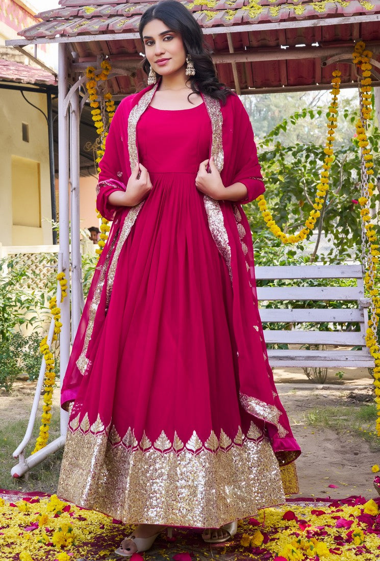 Amazing Pink Color Georgette Fabric Gown