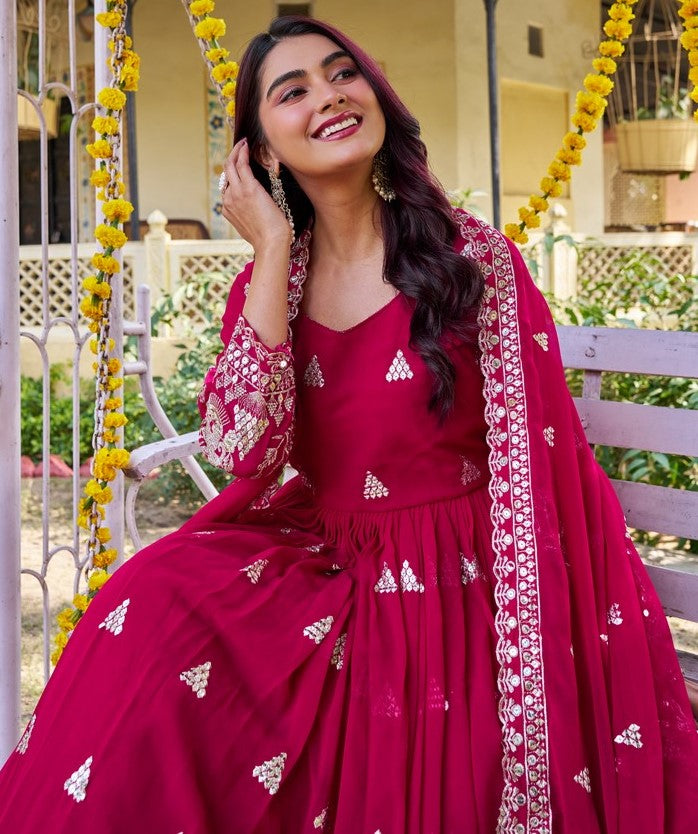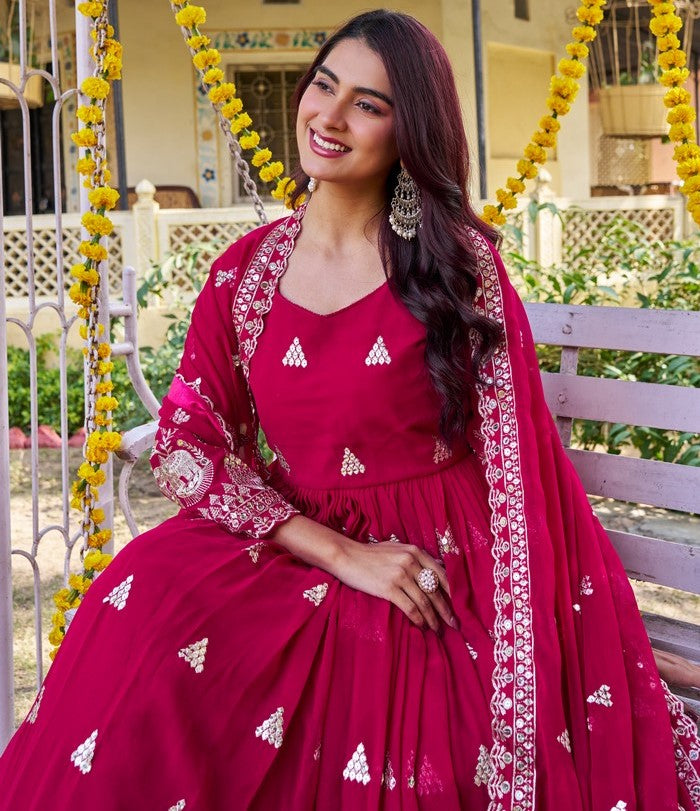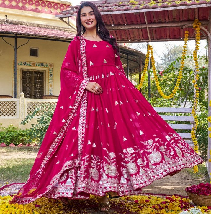 Attractive These Beautiful Looking Readymade Long Gown With Dupatta. Its Beautified With Designer Sequance Embroidery Work.