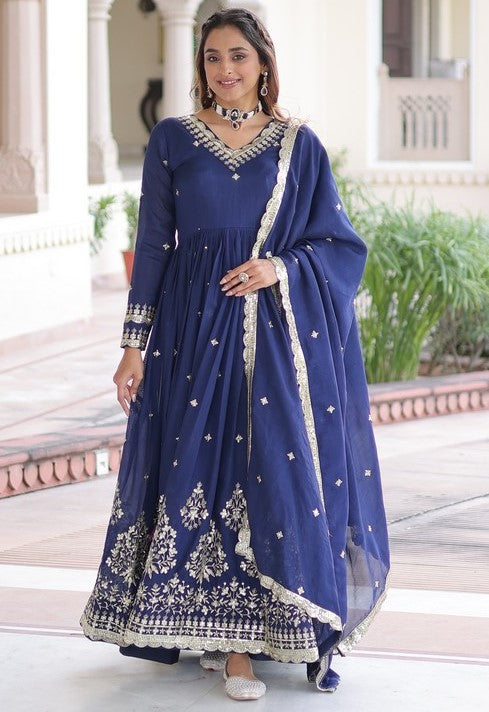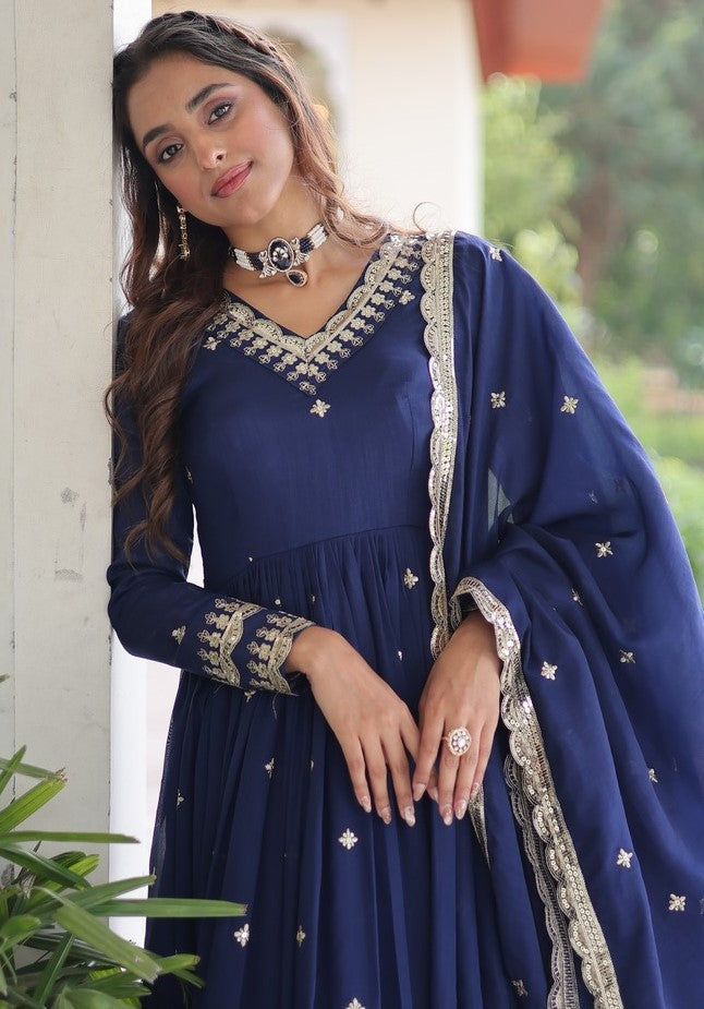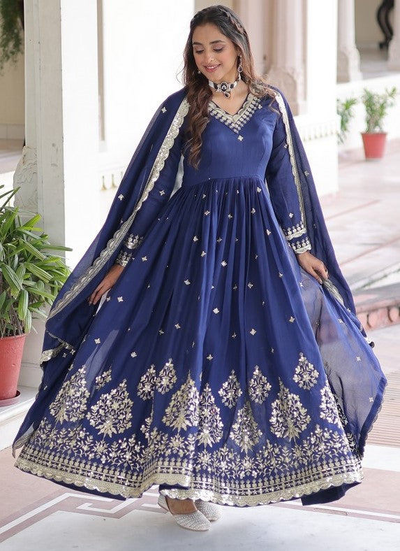 Attactive These Beautiful Looking Readymade Long Gown With Dupatta.These Gown And Dupatta is Fabricated On Vichitra Silk.Its Beautified With Designer Sequance Embroidery Work.