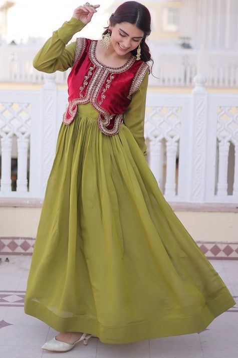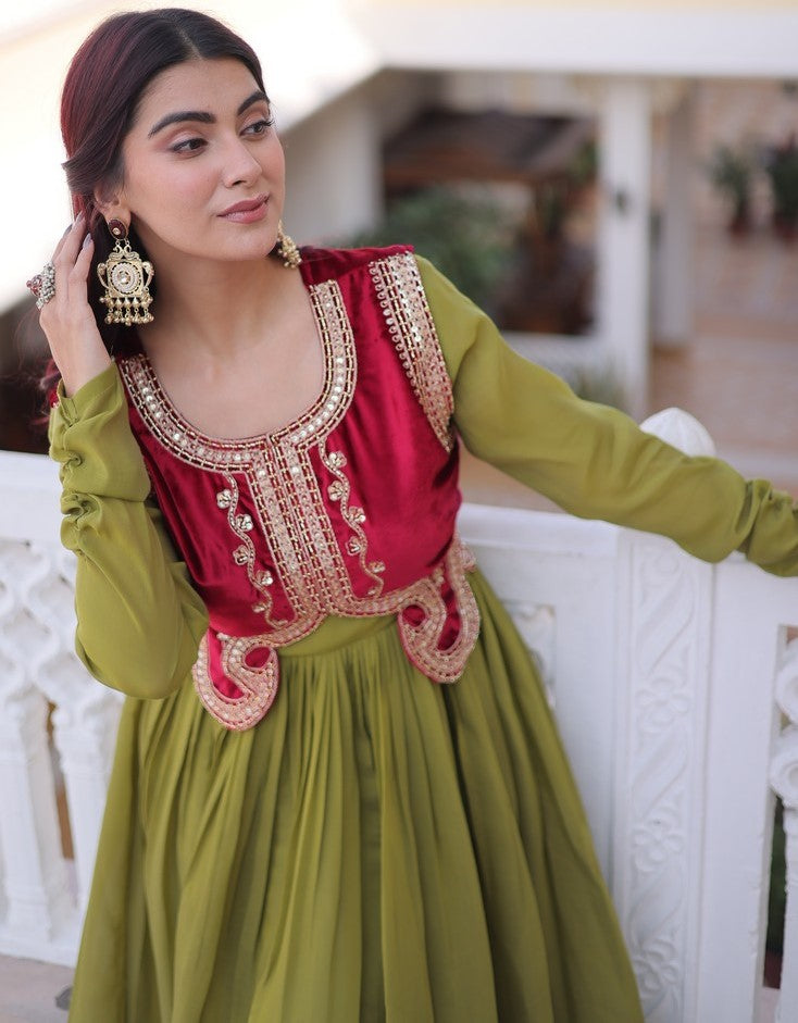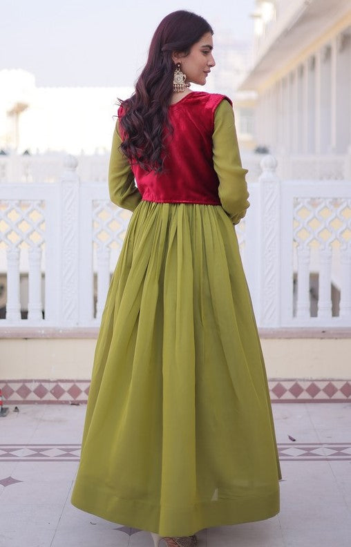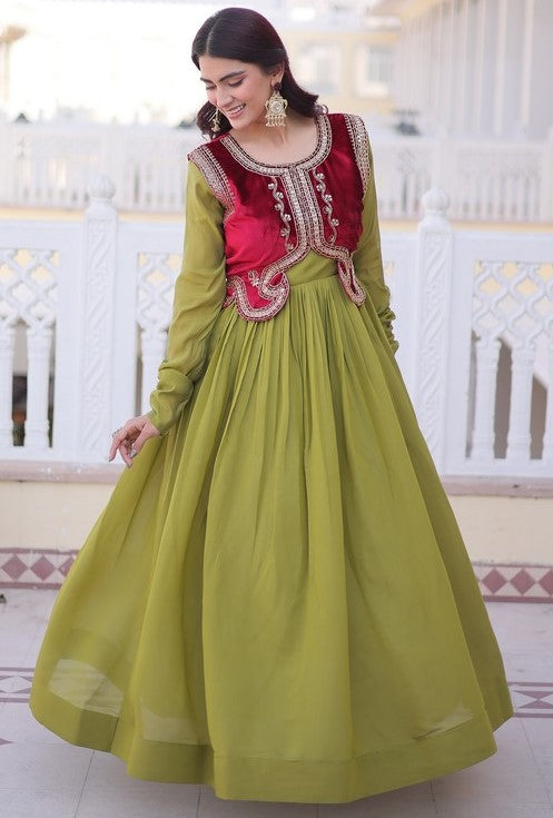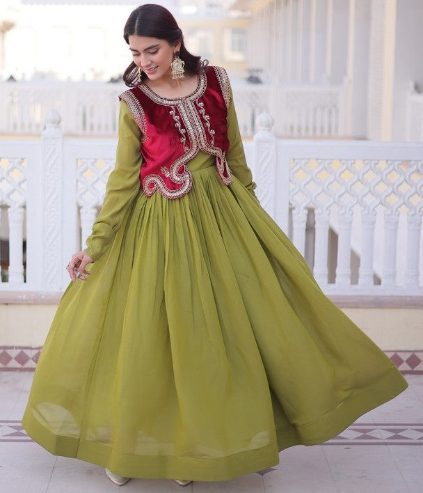 Work Ice Velvet With Beads & Sequance Embroidered work