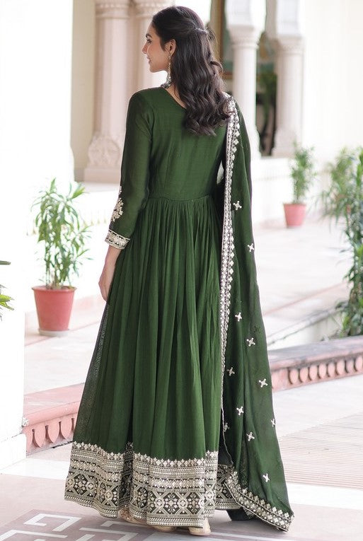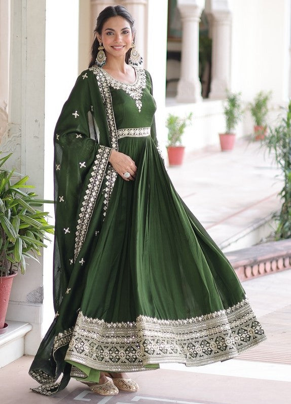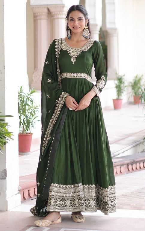 Attactive These Beautiful Looking Readymade Long Gown With Dupatta.These Gown And Dupatta is Fabricated On Vichitra Silk.Its Beautified With Designer Sequance Embroidery Work.