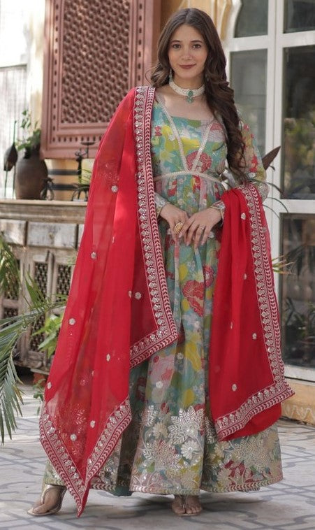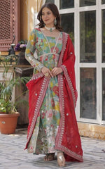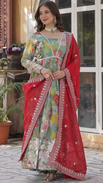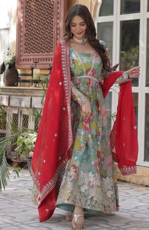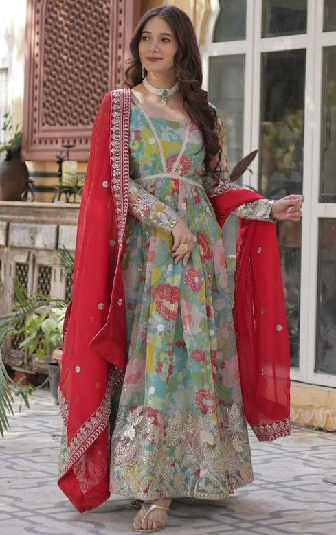 Grab These Beautiful Looking Designer Gown With Dupatta.Its Beautified With Designer Thread,Sequance Embroidery Work.