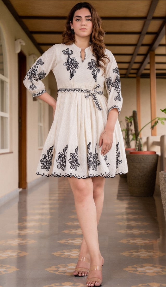 Amazing White Color Cotton Fabric Indowestern