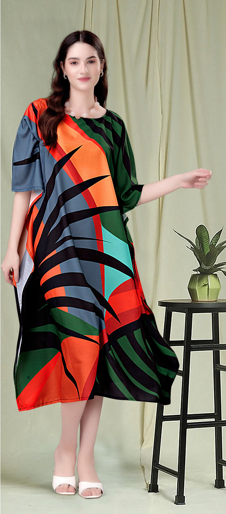 Beautiful Multi Color Rayon Fabric Kaftan