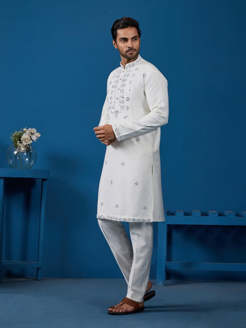 Amazing White Color Viscose Fabric Kurta Pajama