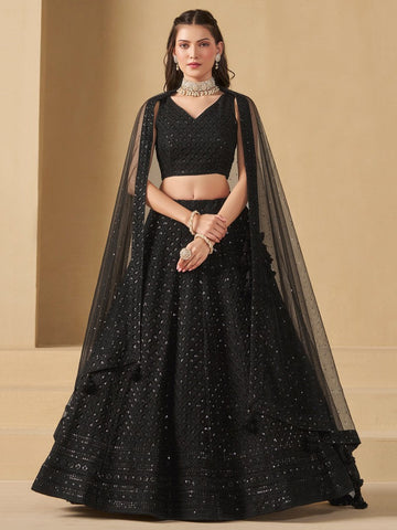 Ideal Black Color Net Fabric Party Wear Lehenga