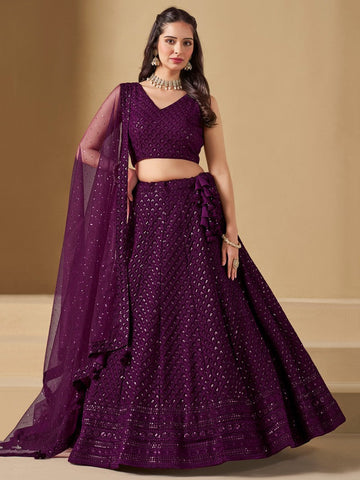 Beautiful Purple Color Georgette Fabric Party Wear Lehenga