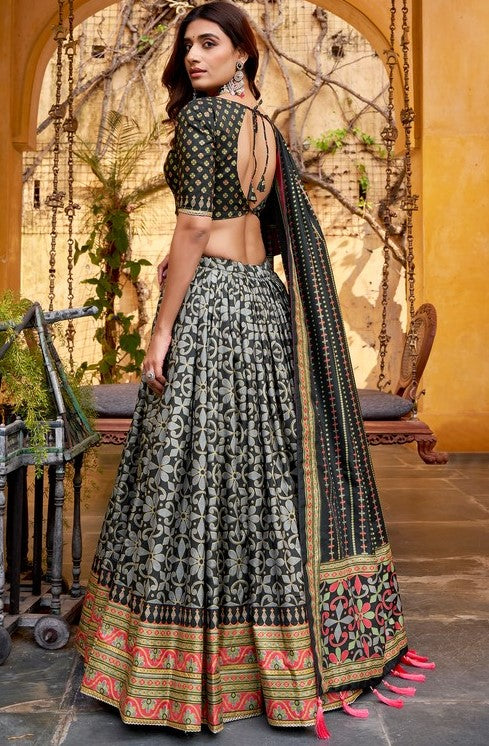 Amazing Black Color Silk Fabric Party Wear Lehenga