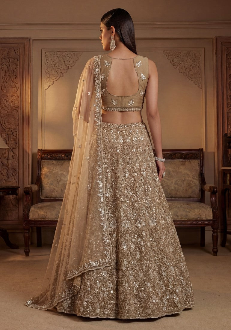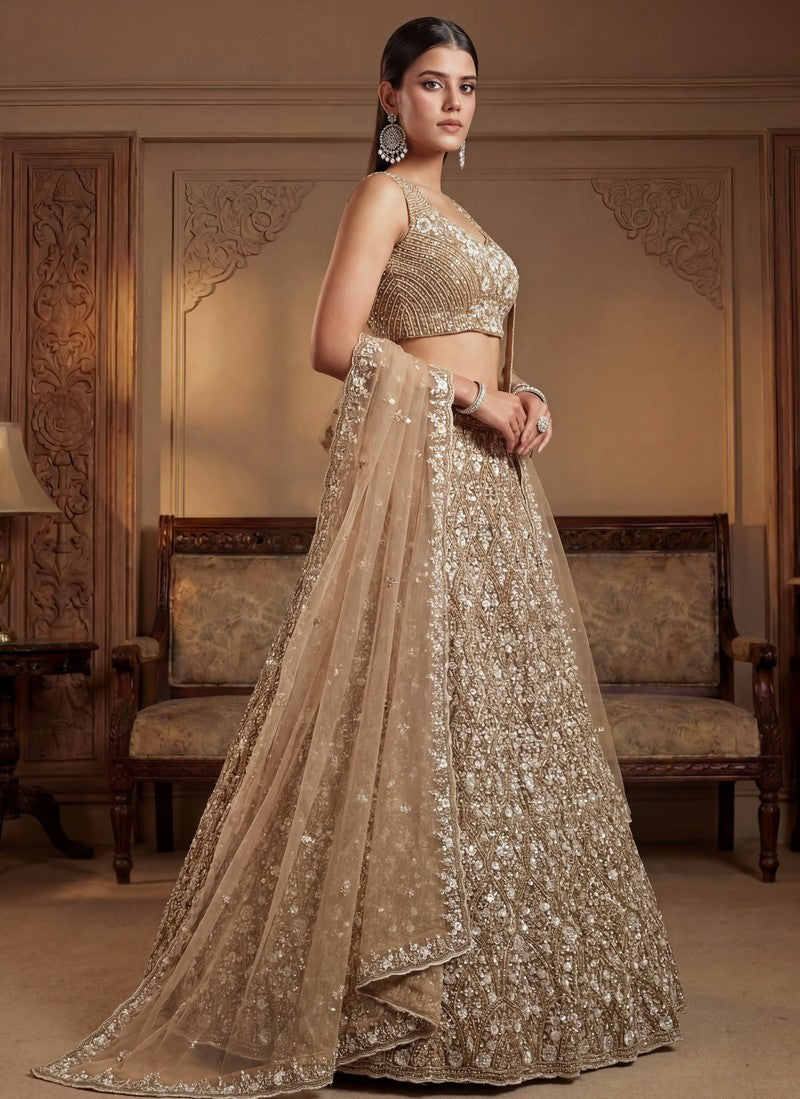 Amazing Golden Color Net Fabric Party Wear Lehenga