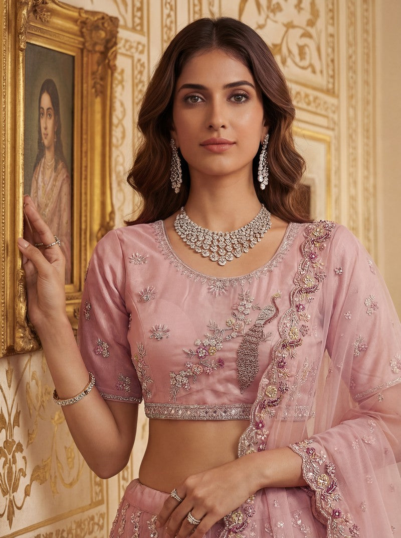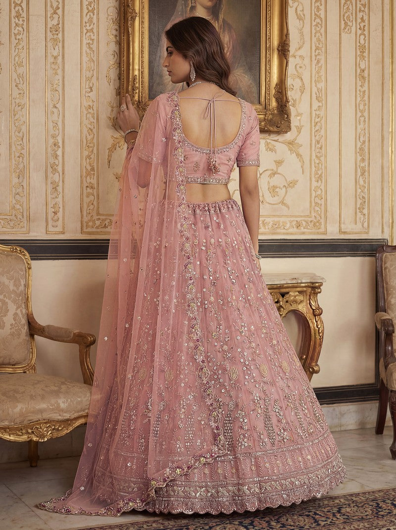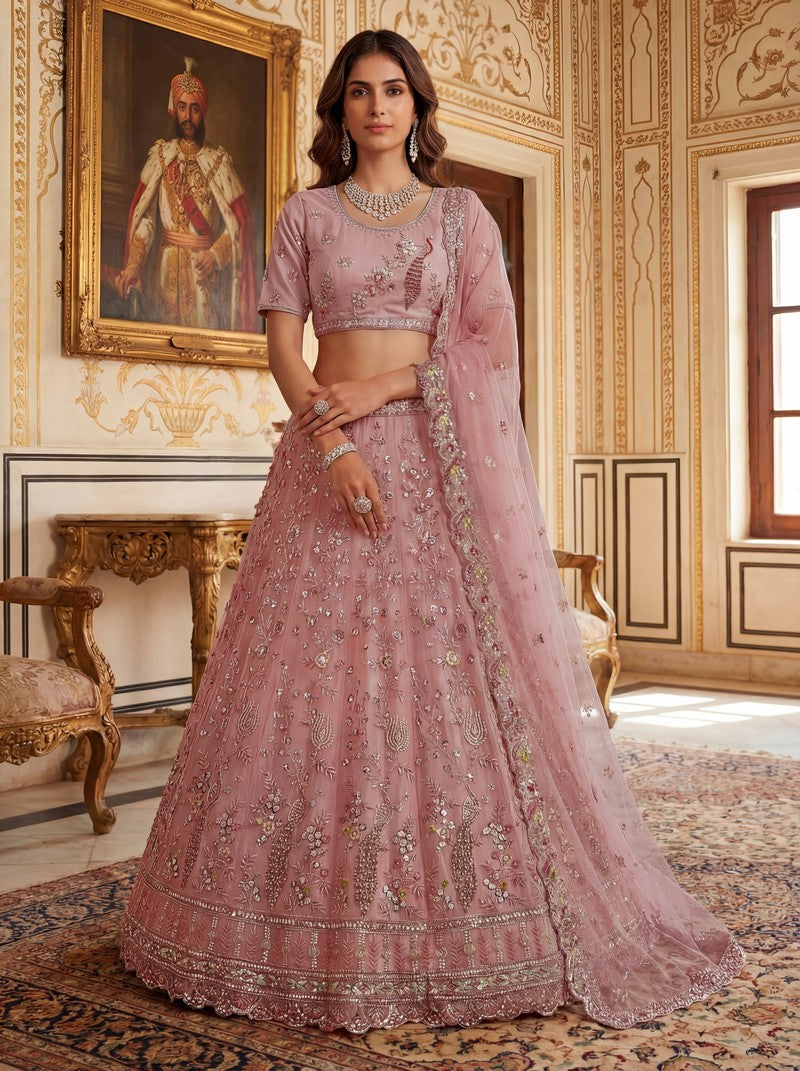 Amazing Peach Color Net Fabric Party Wear Lehenga