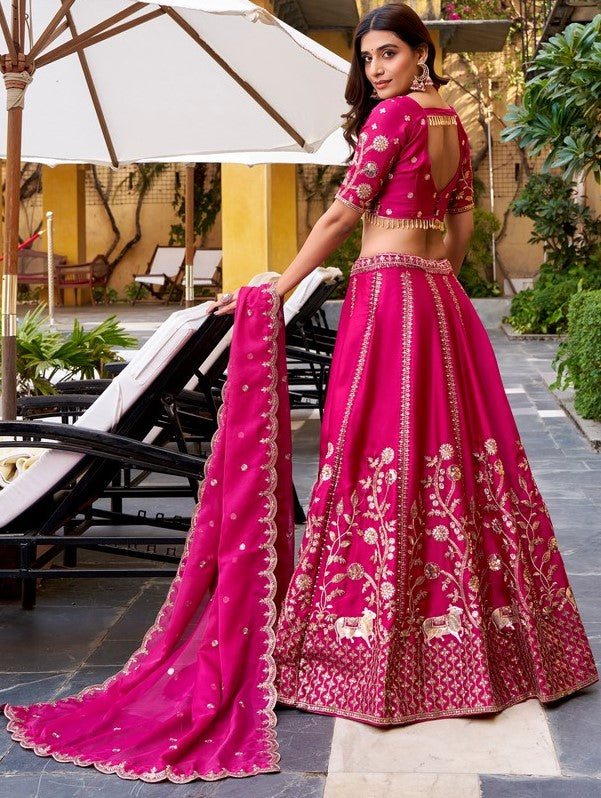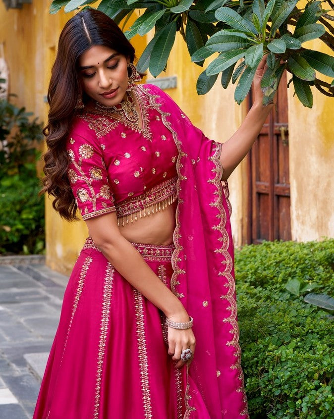 Amazing Pink Color Silk Fabric Party Wear Lehenga