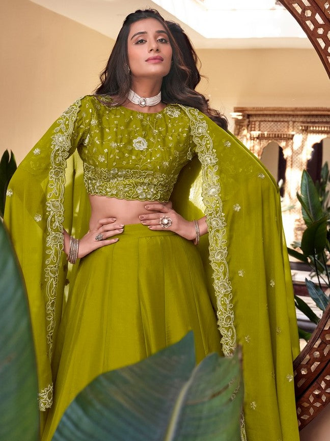 Angelic Green Color Georgette Fabric Party Wear Lehenga
