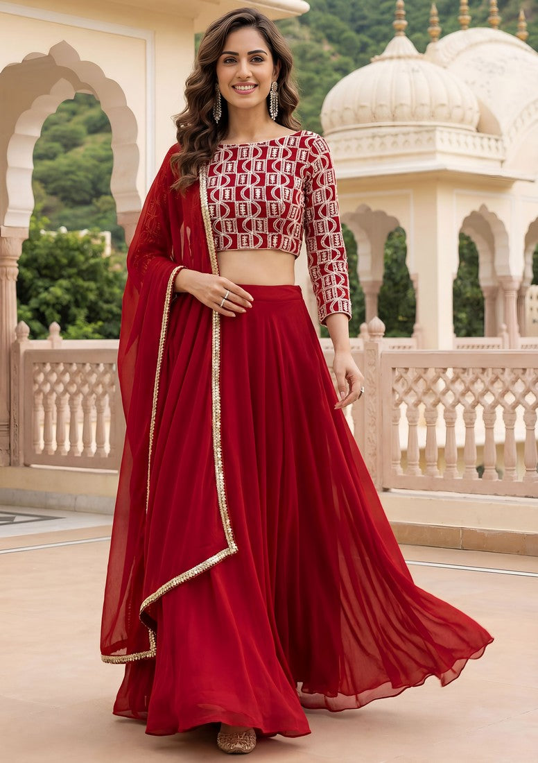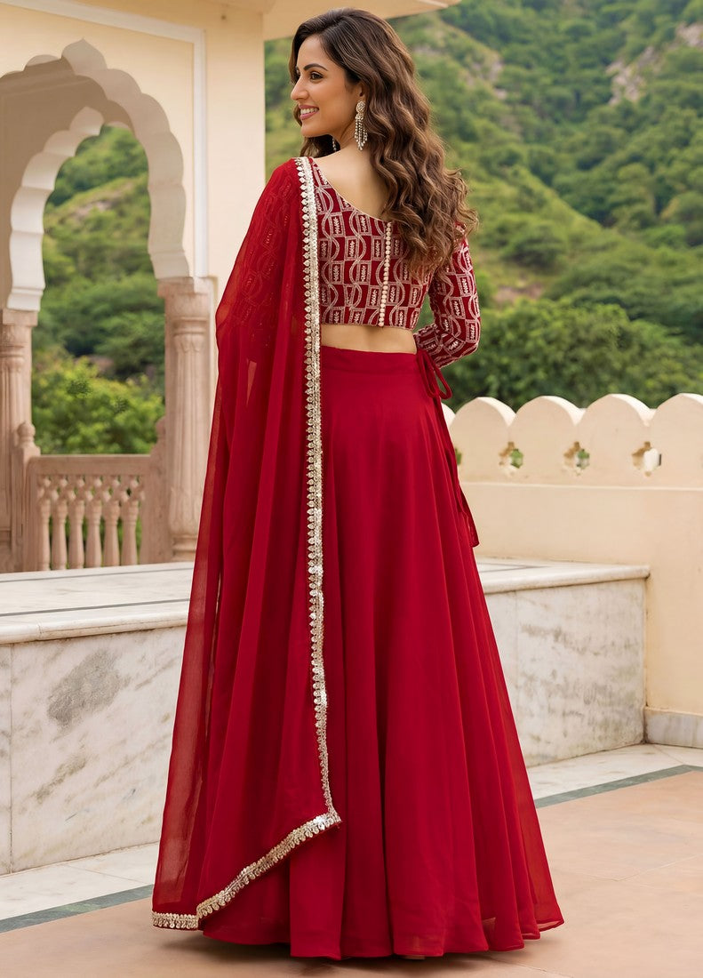 Dazzling Red Color Georgette Fabric Party Wear Lehenga