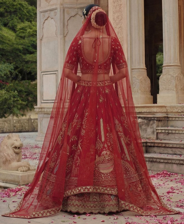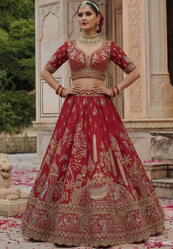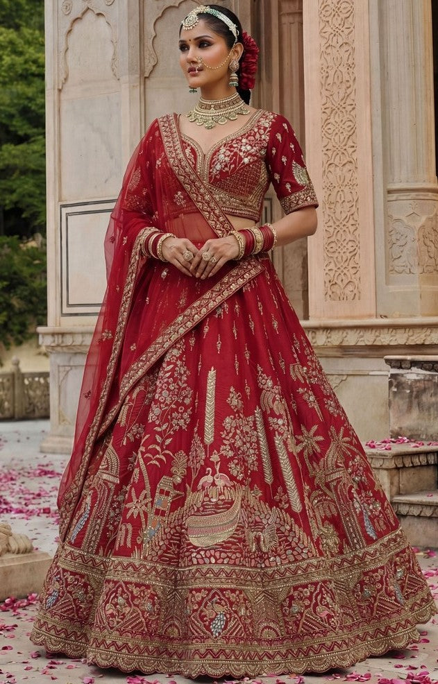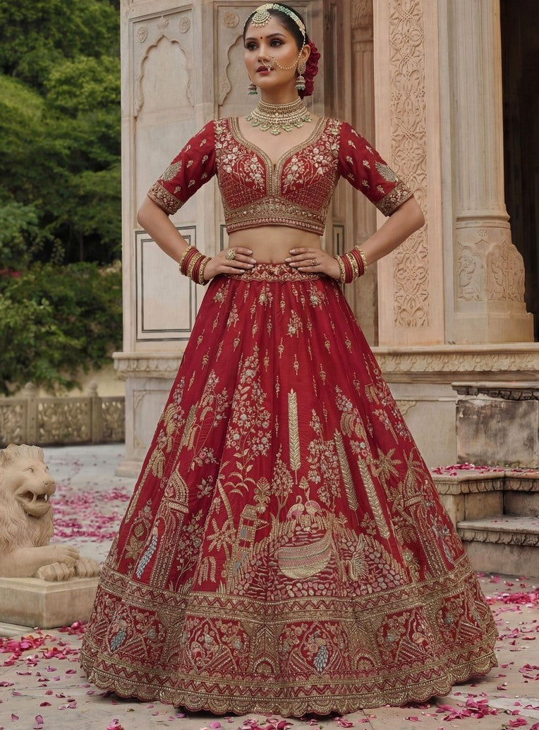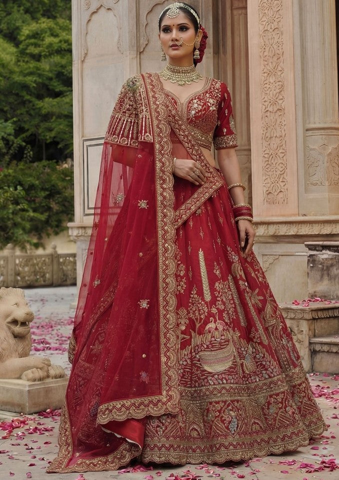 Dazzling Red Color Silk Fabric Wedding Lehenga