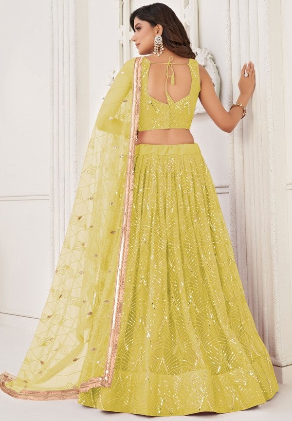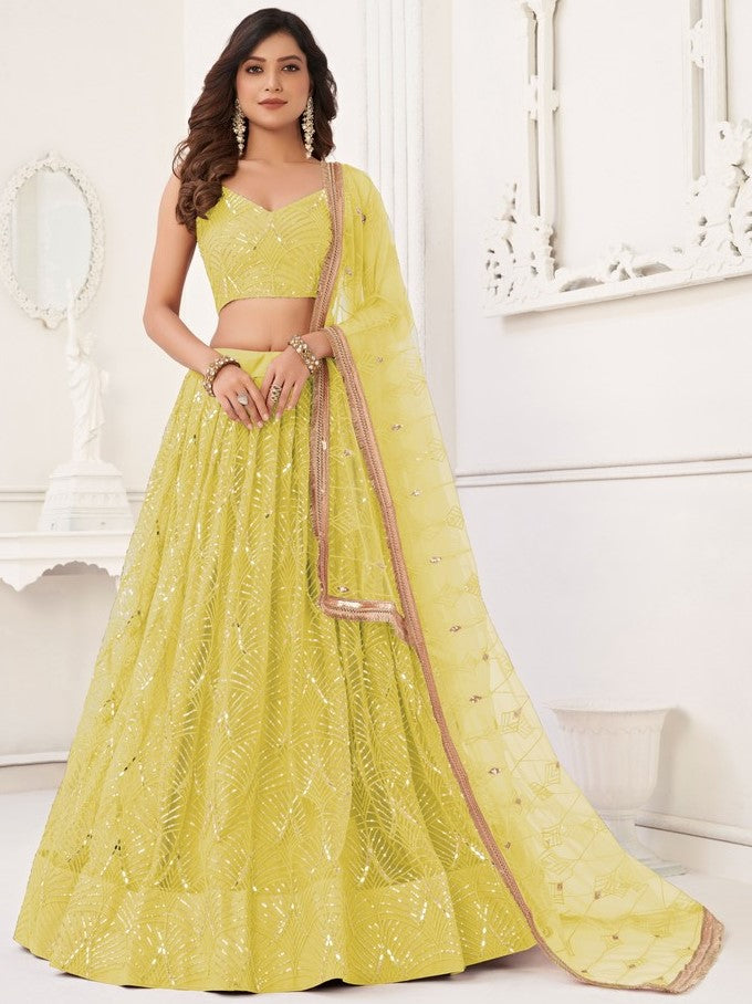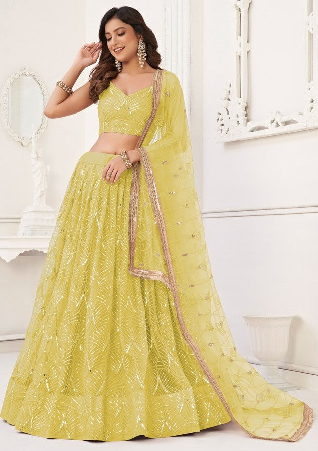 Dazzling Yellow Color Net Fabric Party Wear Lehenga