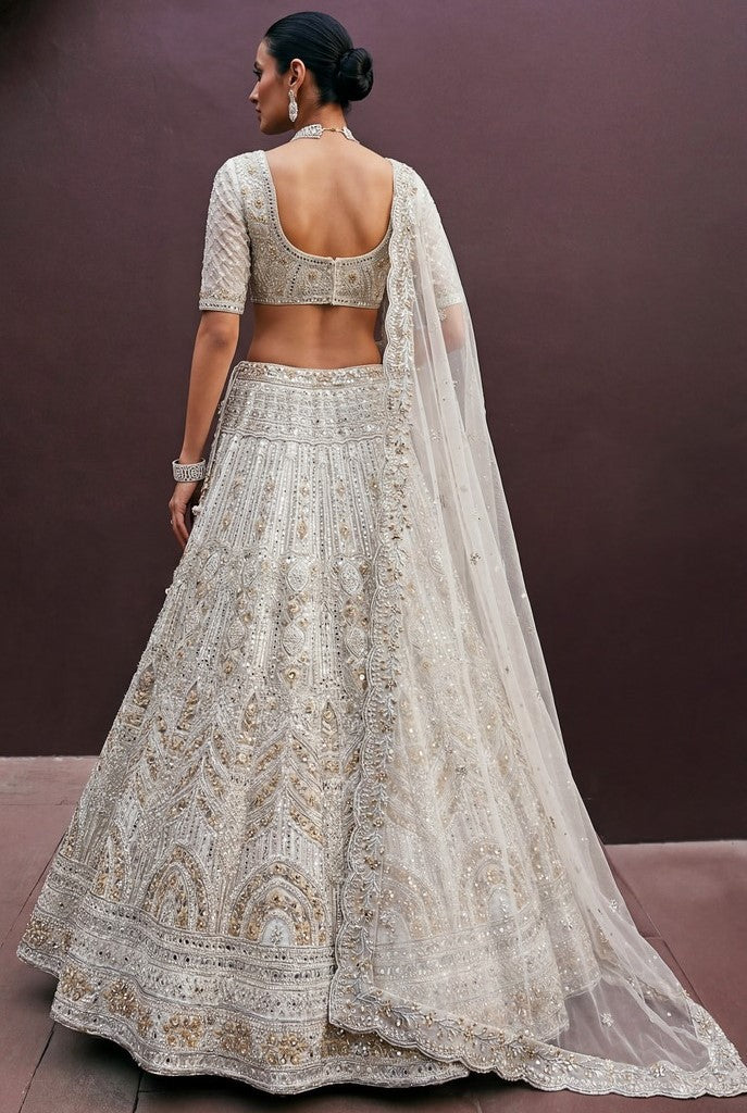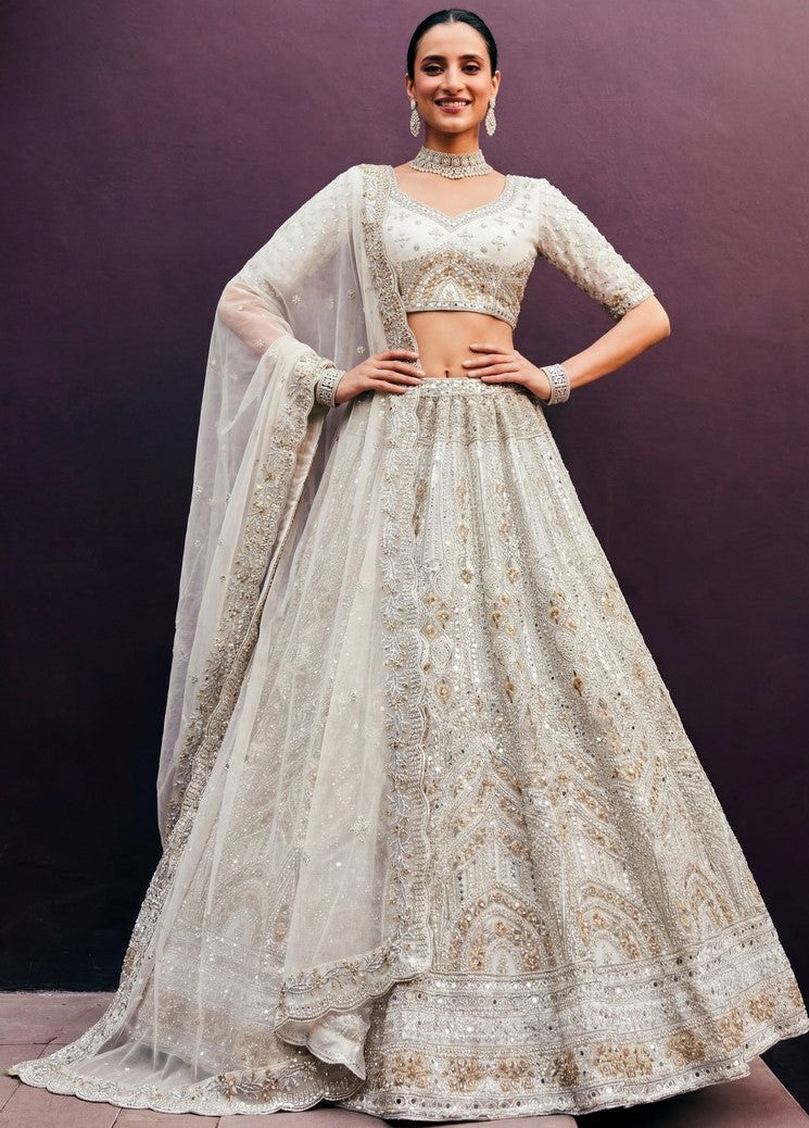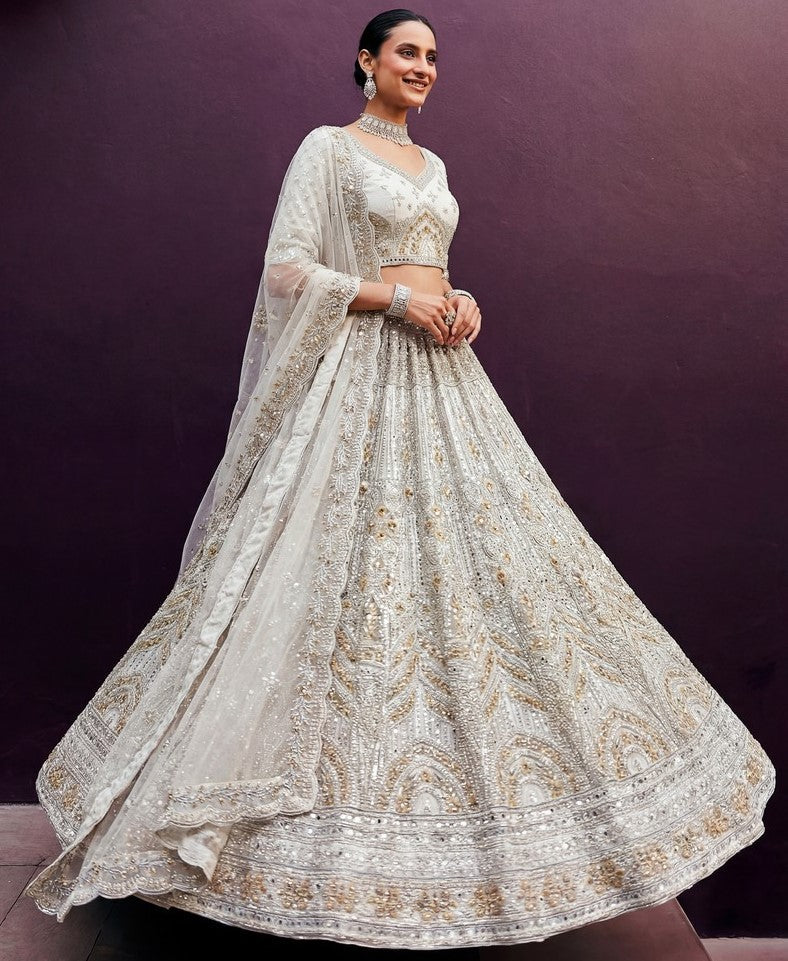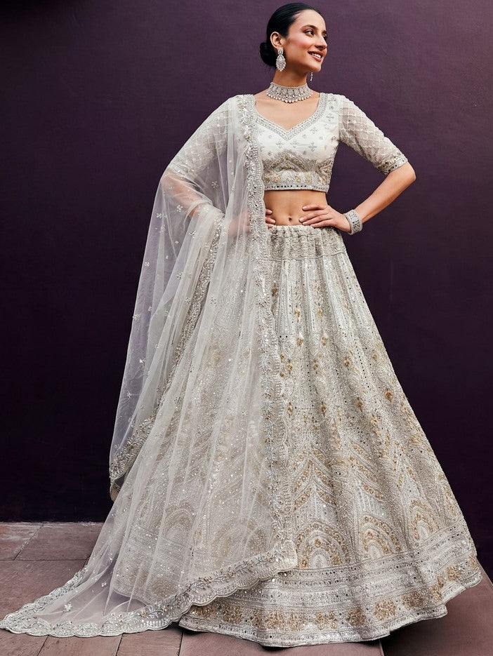 Elegant White Color Net Fabric Party Wear Lehenga