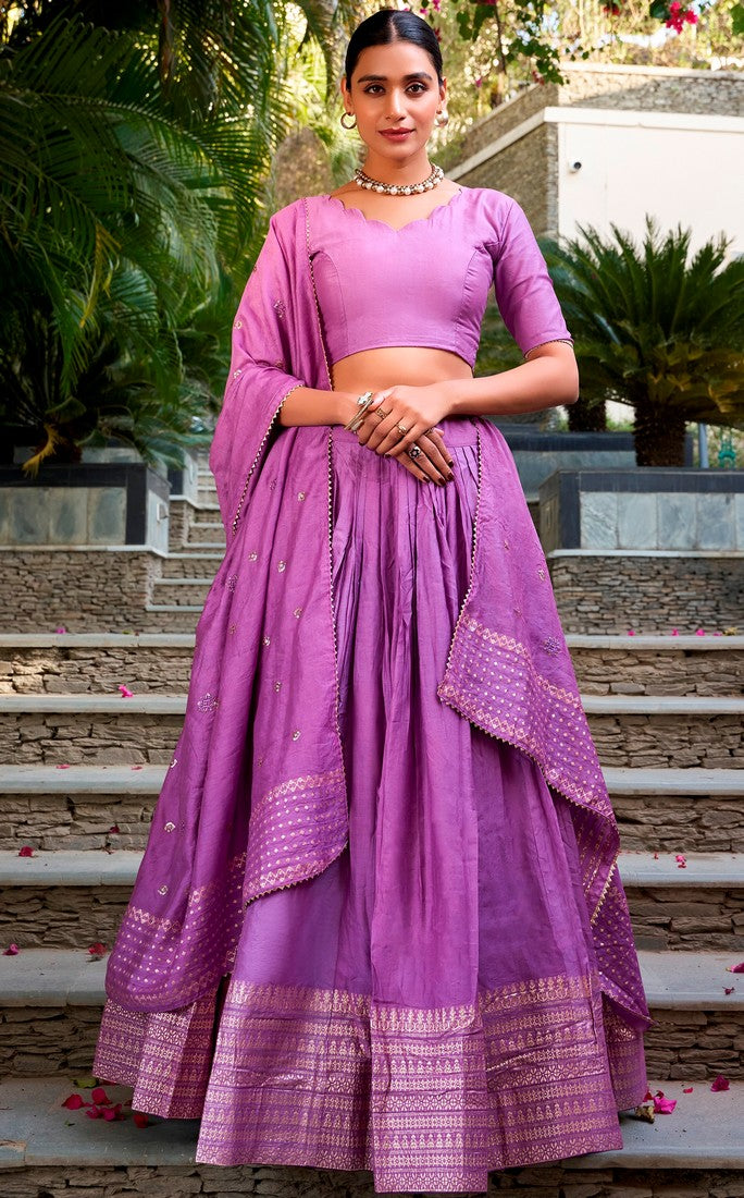 Glowing Purple Color Chanderi Fabric Party Wear Lehenga