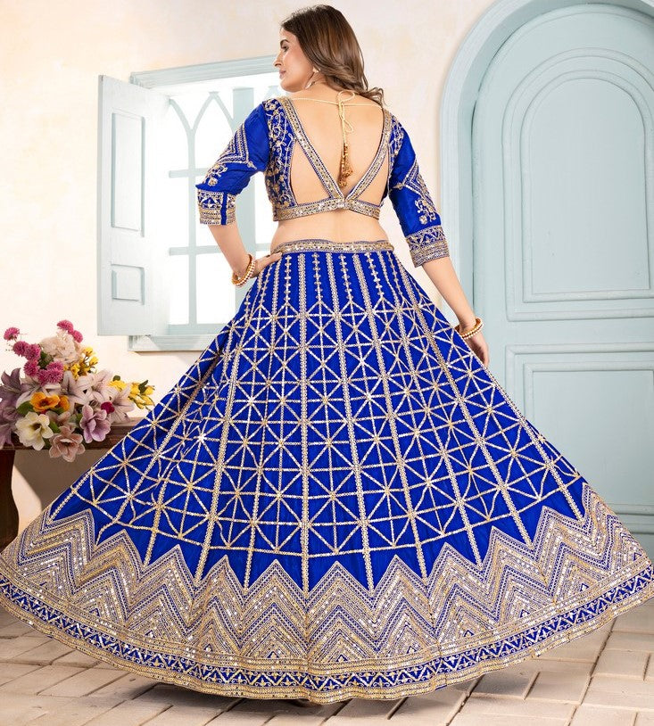 Ideal Blue Color Chinon Fabric Party Wear Lehenga