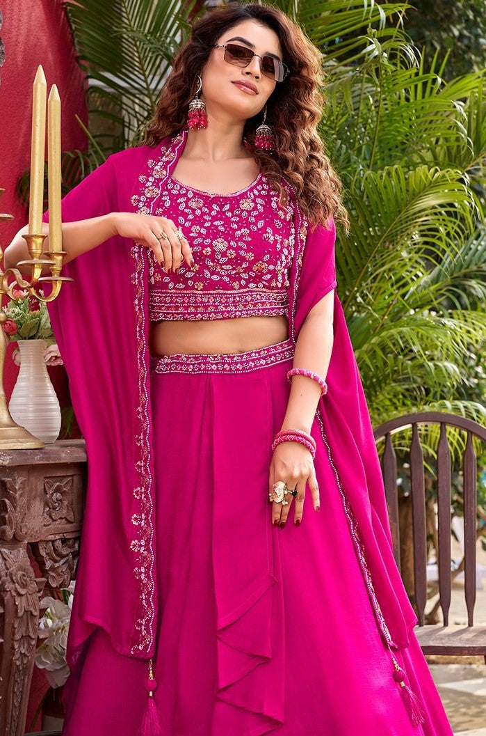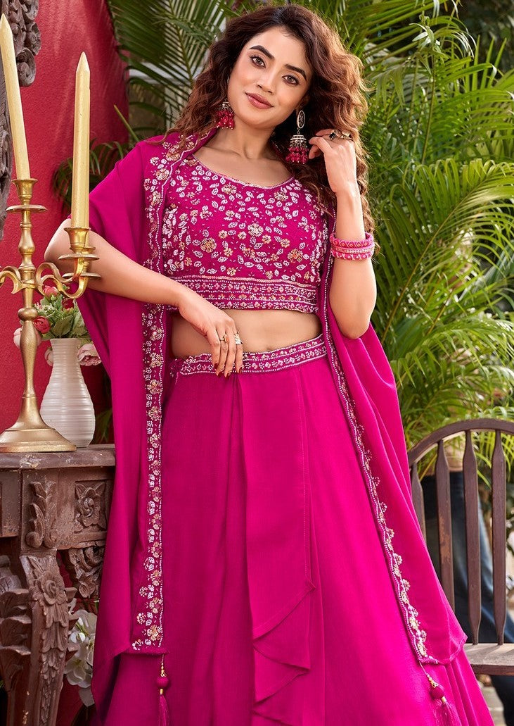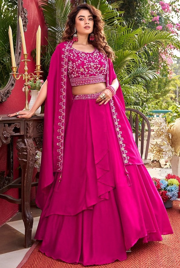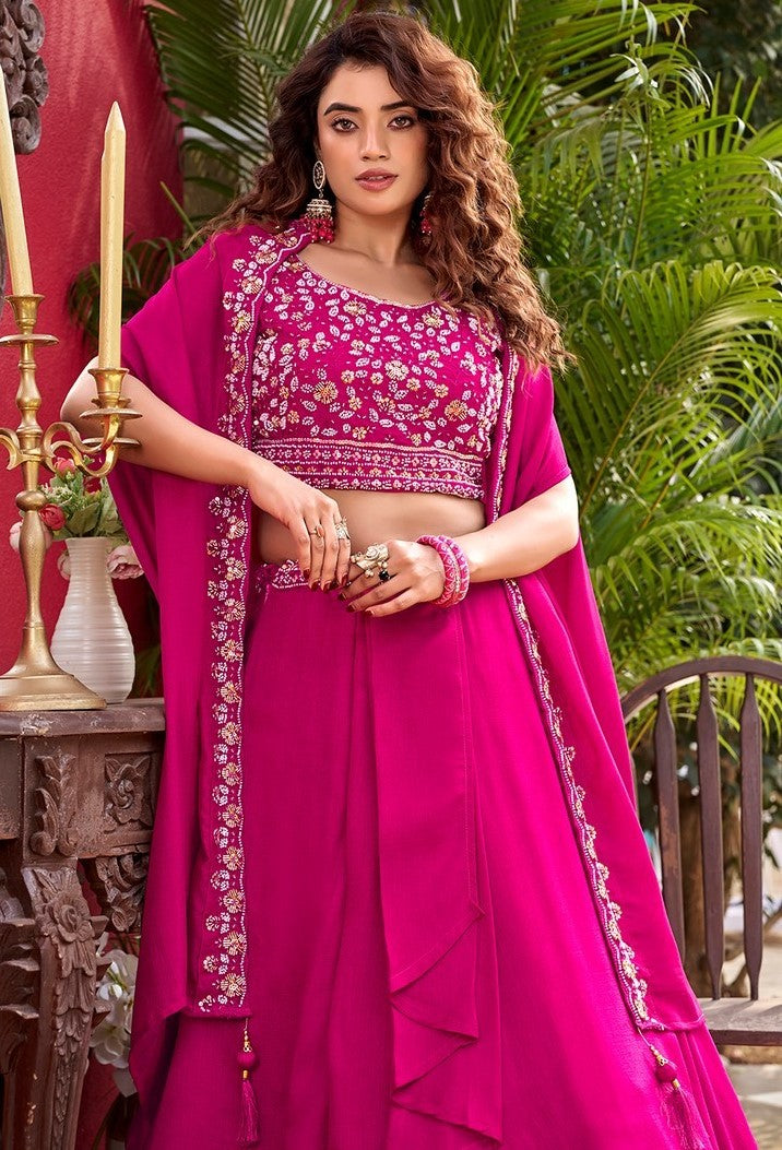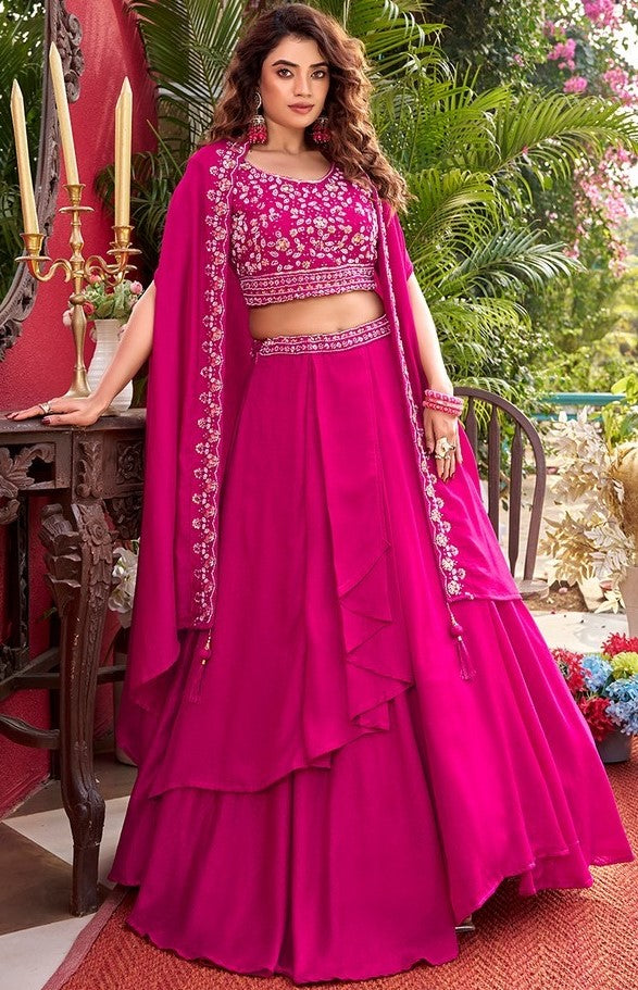 Pretty Pink Color Vichitra Fabric Party Wear Lehenga