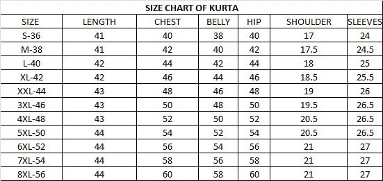 | Size | S(36"),M(38"),L(40"),XL(42"),XXL(44"),3XL(46"),4XL(48"),5XL(50"),6XL(52"),7XL(54"),8XL(56") |