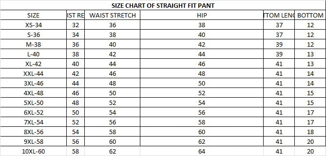 Size S(36"),M(38"),L(40"),XL(42"),XXL(44"),3XL(46"),4XL(48"),5XL(50"),6XL(52"),7XL(54"),8XL(56")