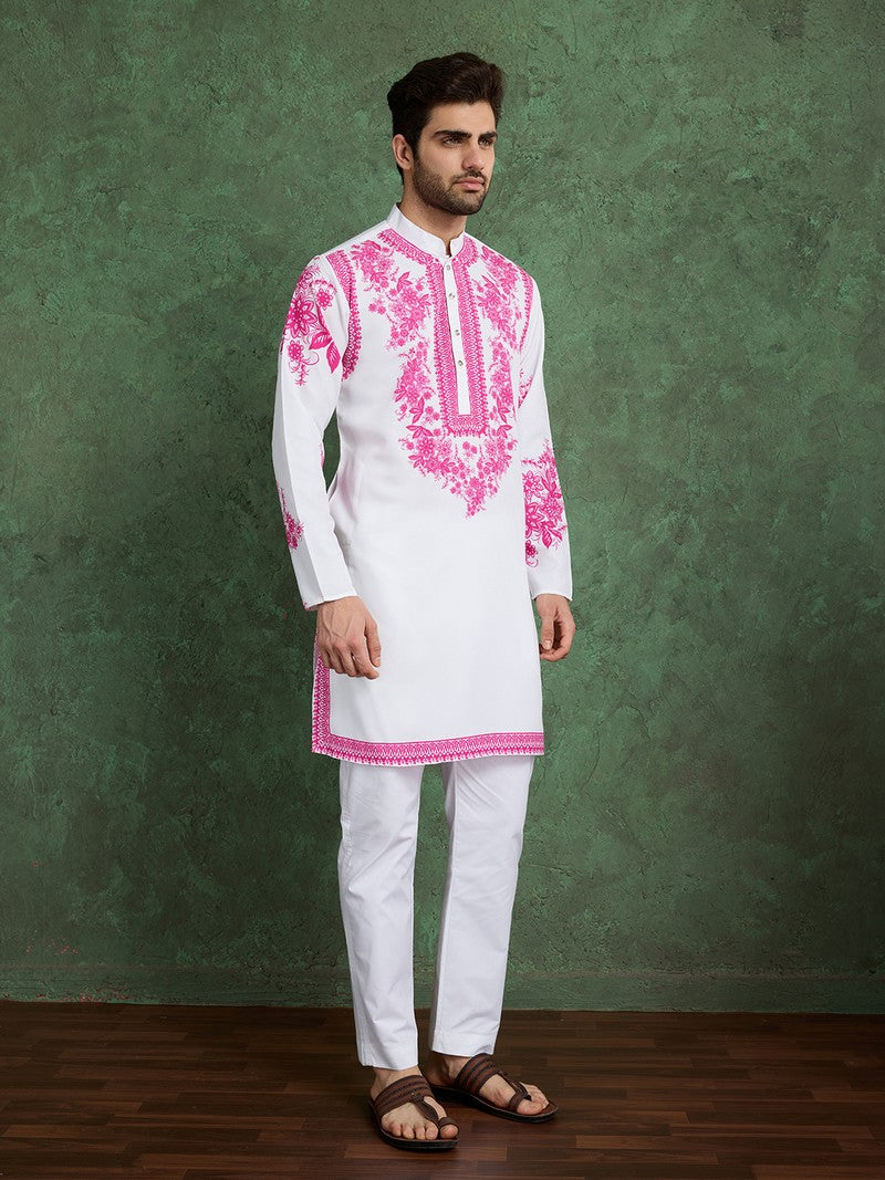 Amazing White Color Viscose Fabric Mens Kurta