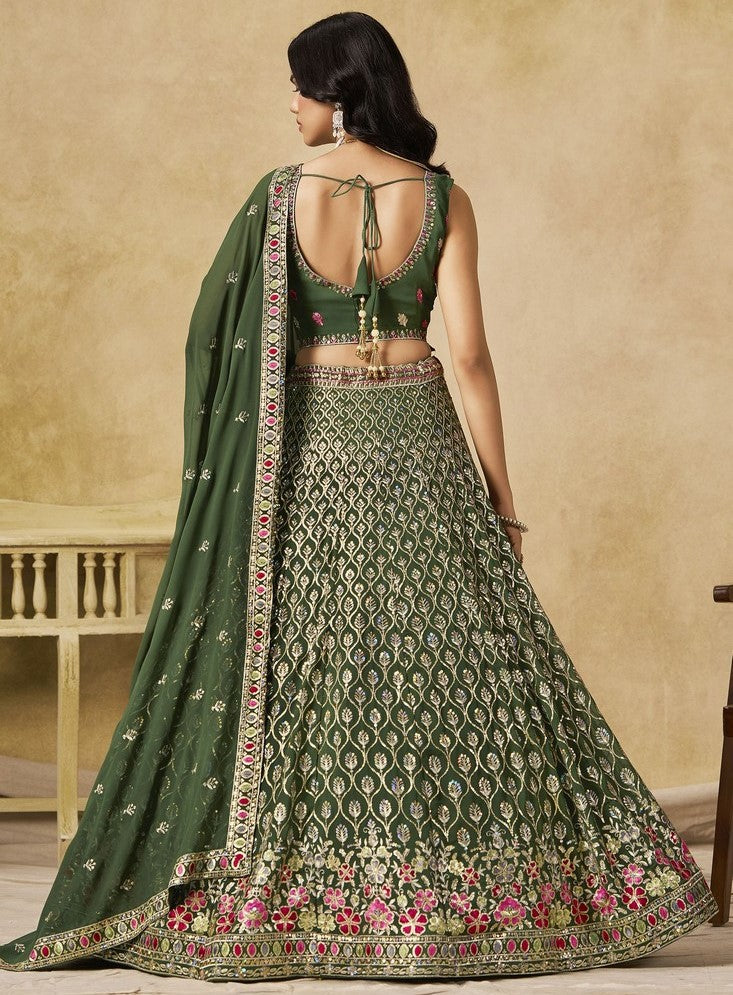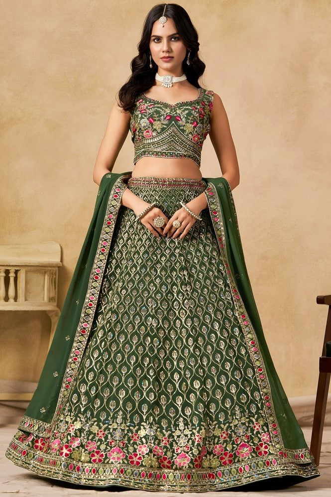 Amazing Green Color Georgette Fabric Party Wear Lehenga