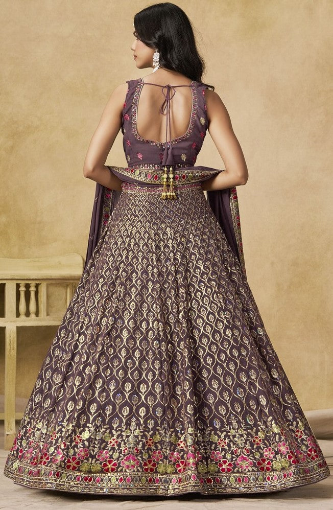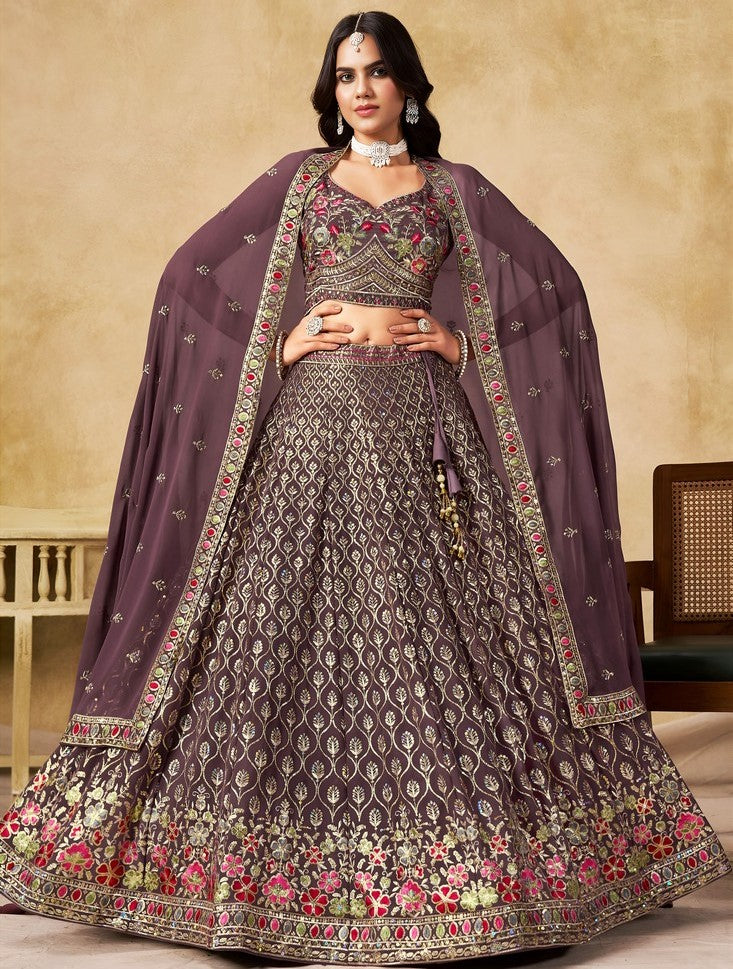 Amazing Purple Color Georgette Fabric Party Wear Lehenga