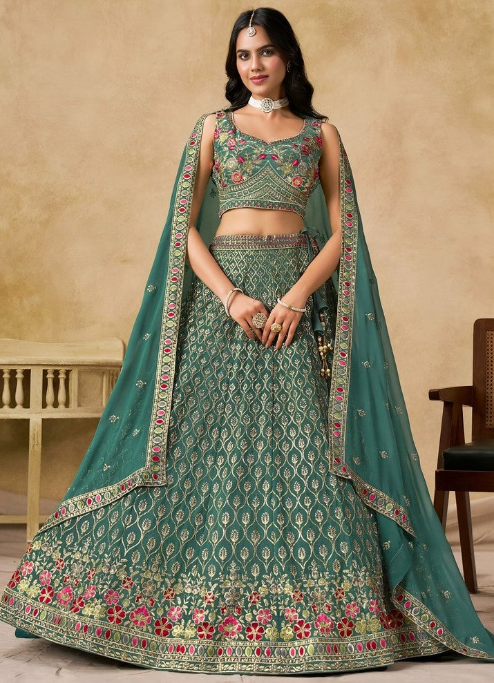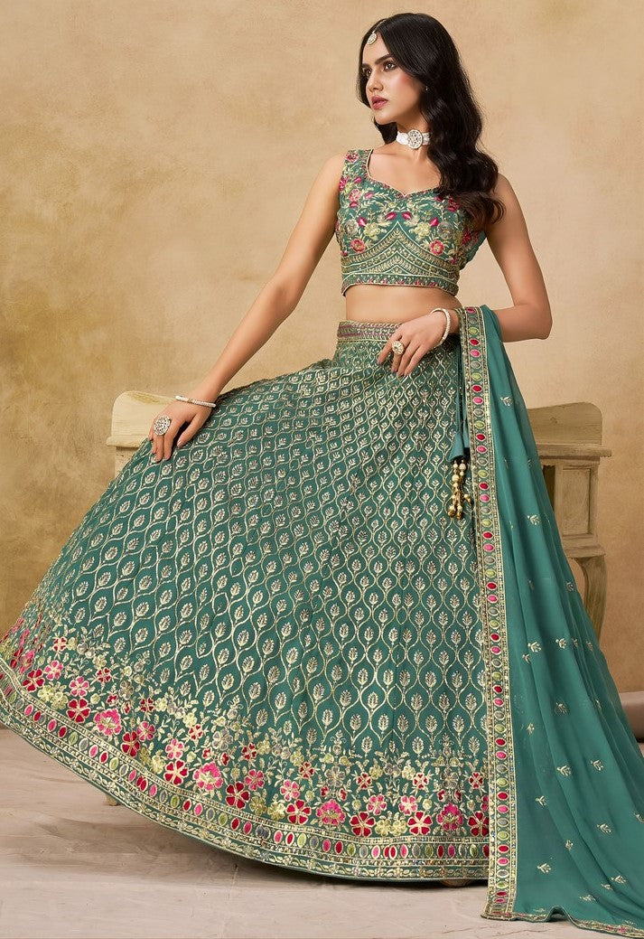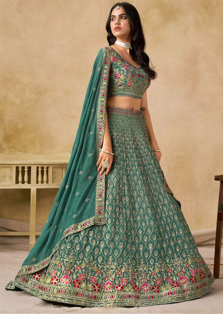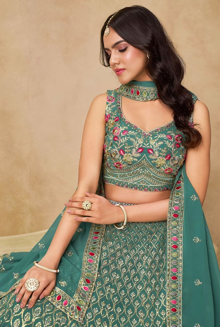 Amazing Turquoise Color Georgette Fabric Party Wear Lehenga