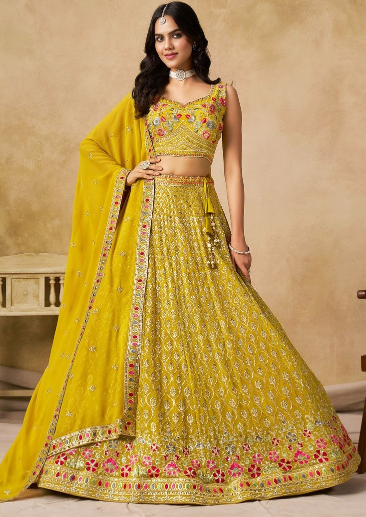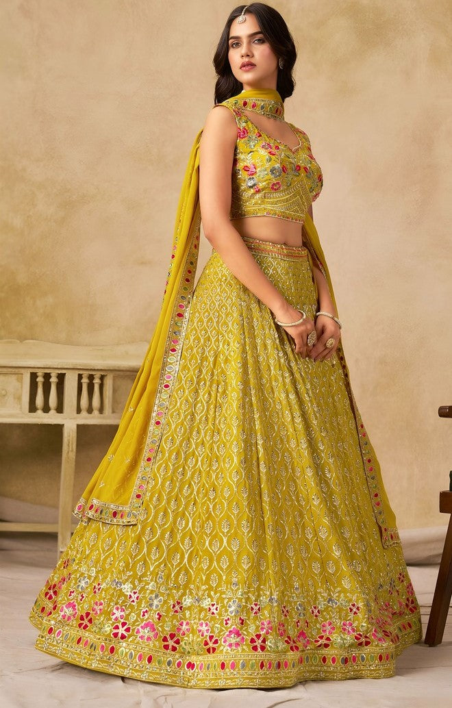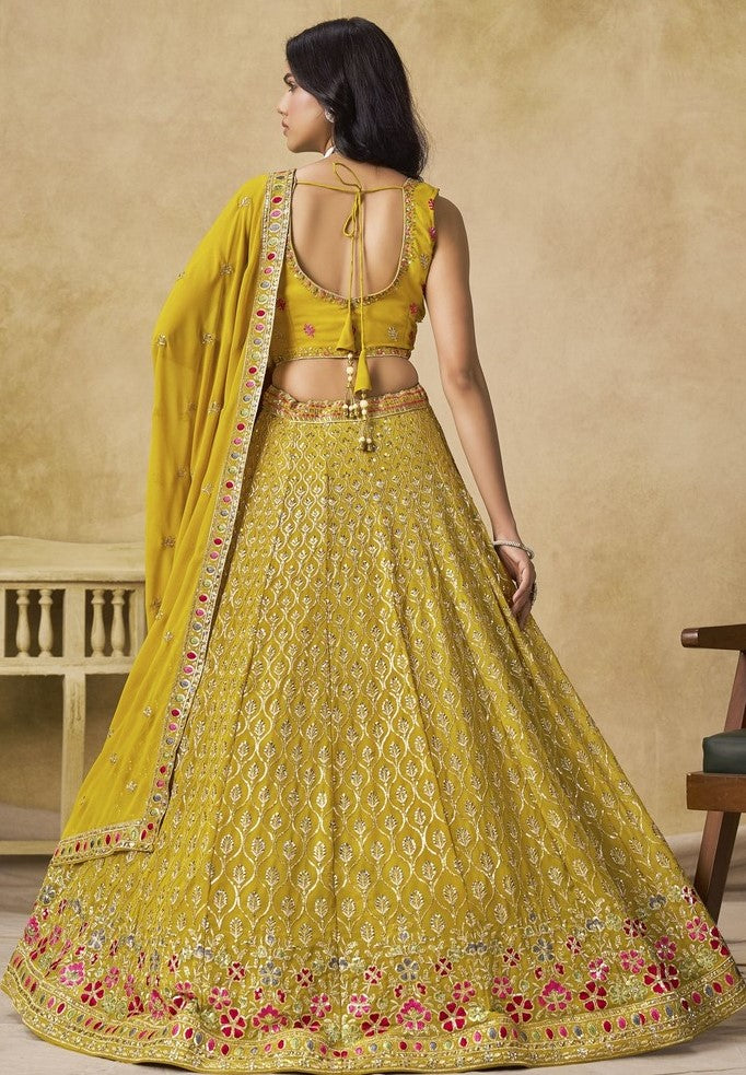 Amazing Yellow Color Georgette Fabric Party Wear Lehenga