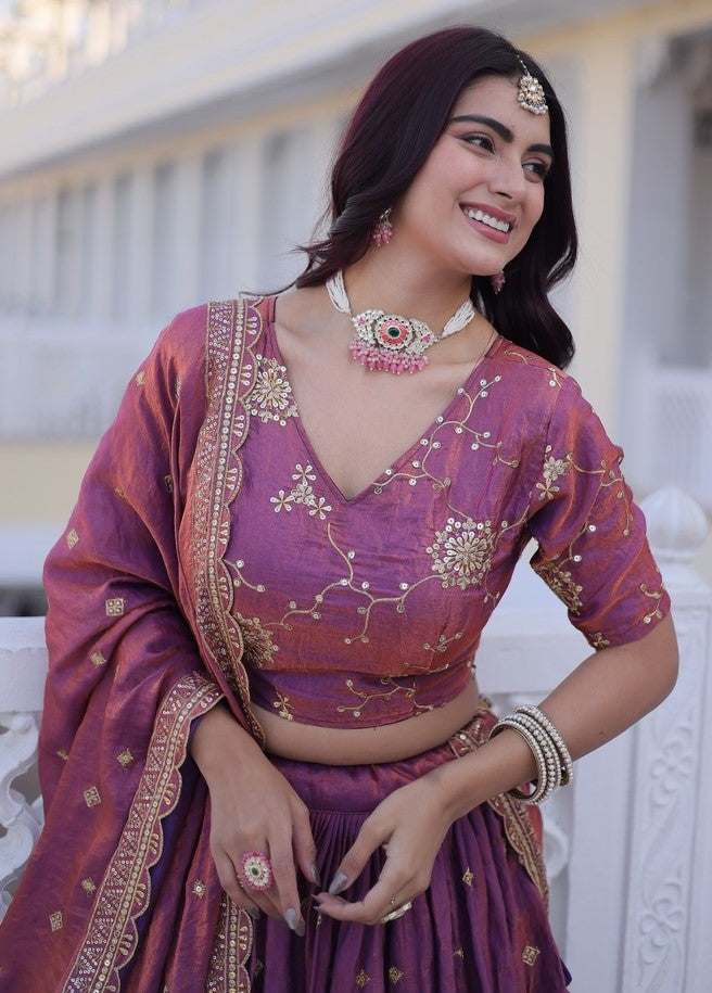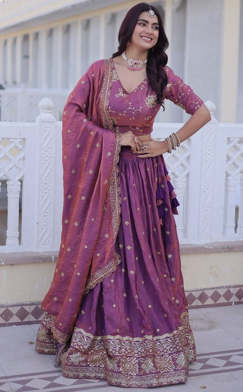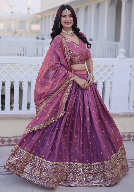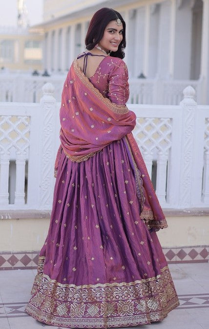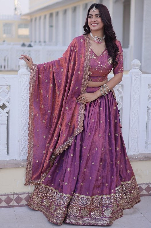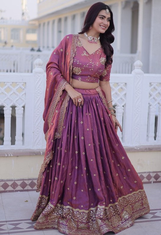 Divine Pink Color Silk Fabric Party Wear Lehenga