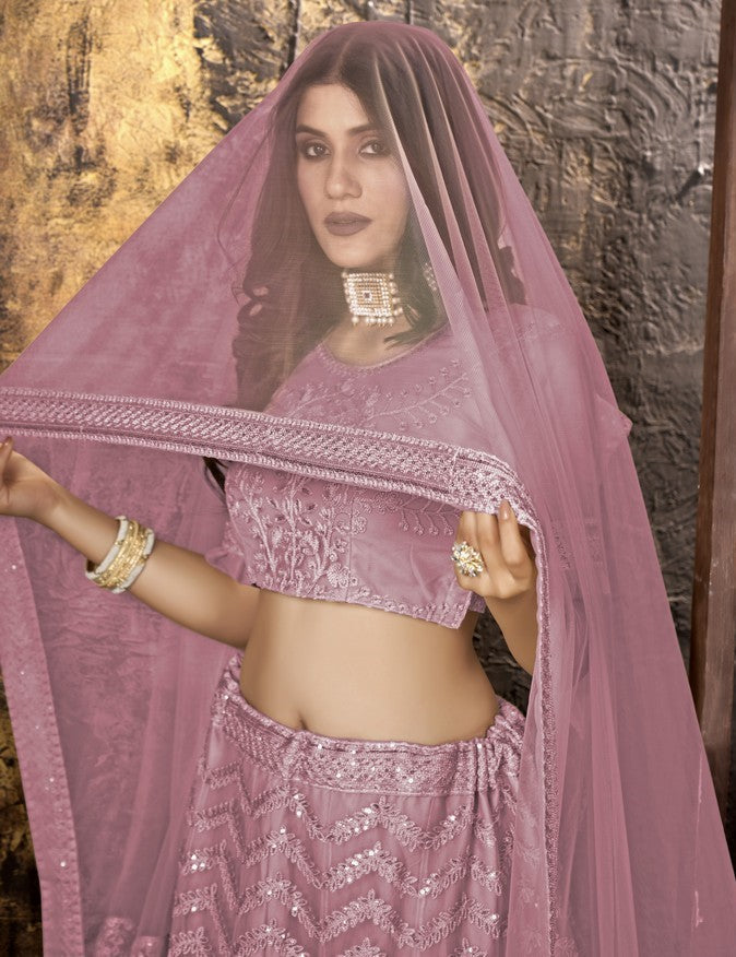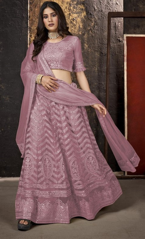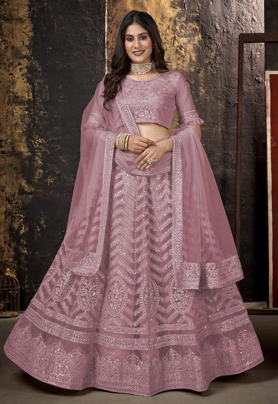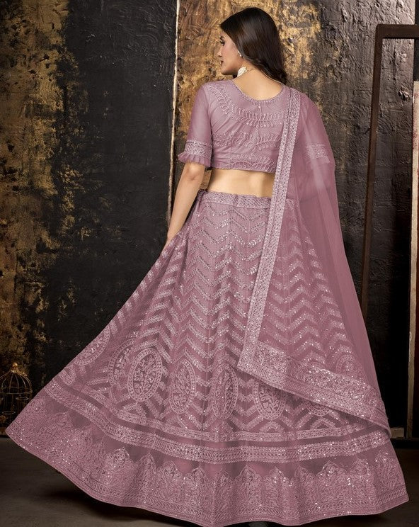 Superb Wine Color Net Fabric Party Wear Lehenga
