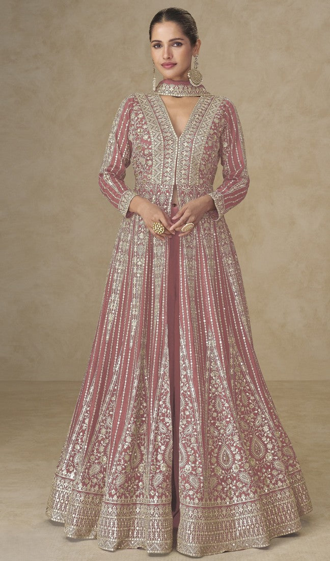 Amazing Pink Color Chinon Fabric Partywear Suit