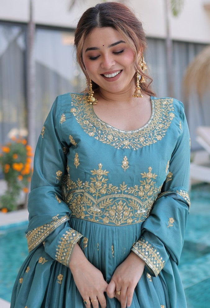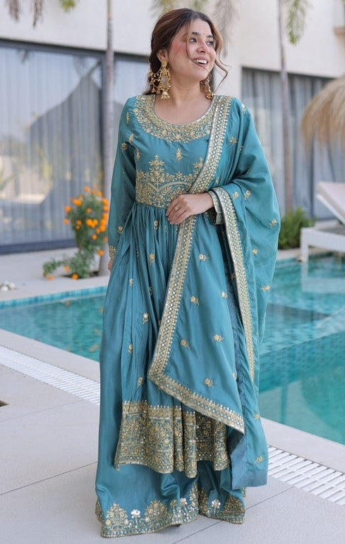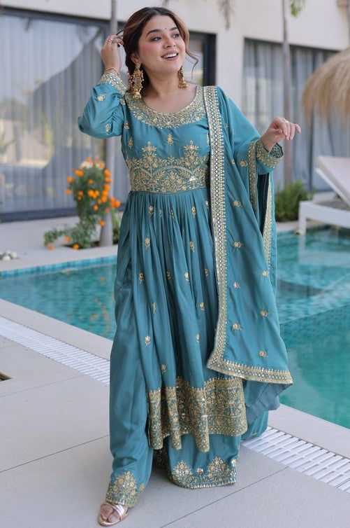 Beautiful Aqua Color Georgette Fabric Partywear Suit
