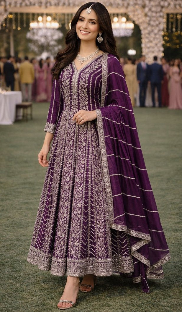Beautiful Voilet Color Chinon Fabric Partywear Suit