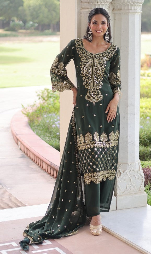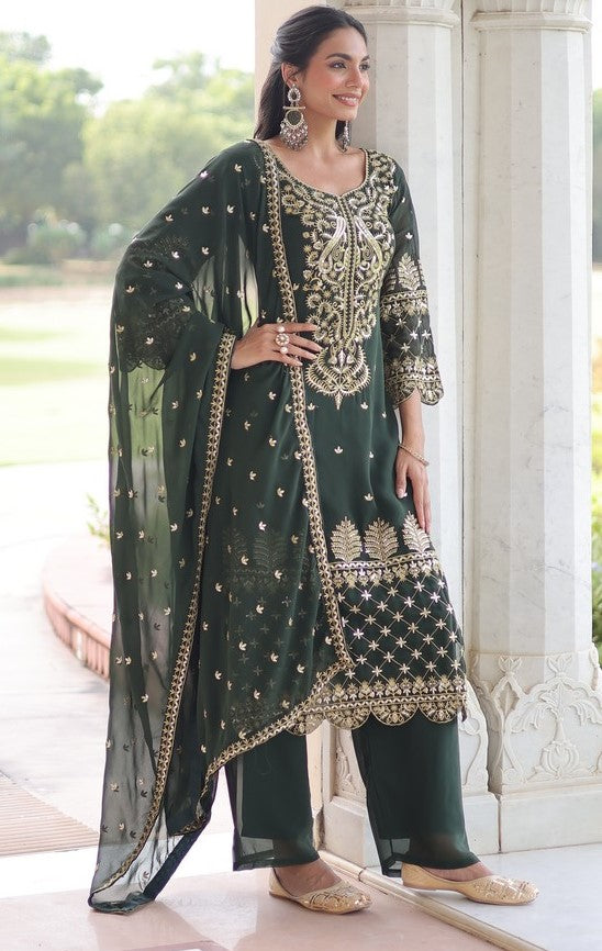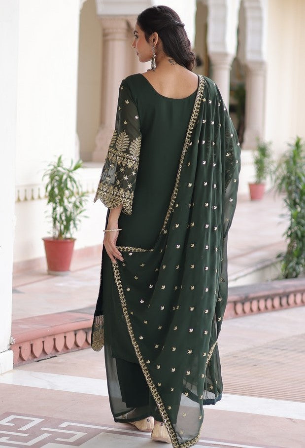 Grab These Beautiful Looking Readymade Suit With Dupatta.These Top Bottom And Dupatta is Fabricated On Faux Georgette.Its Beautified With Designer Sequance Embroidery Work.