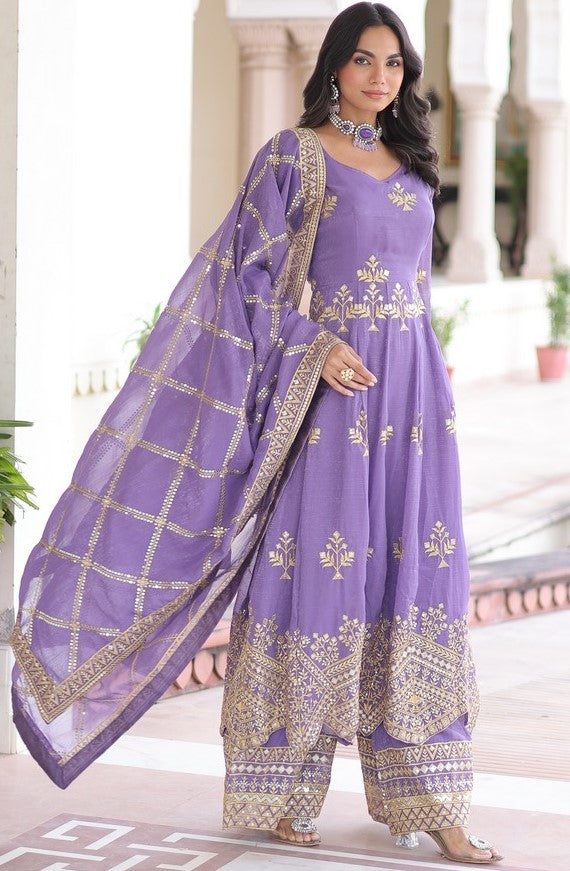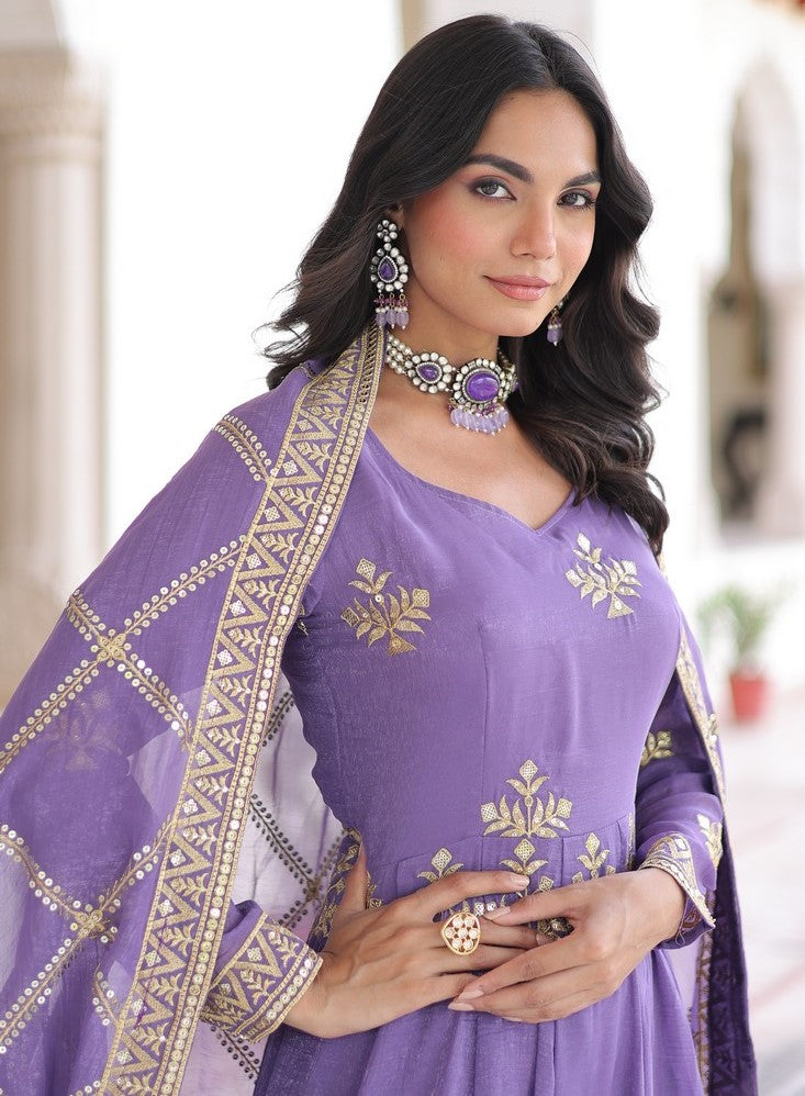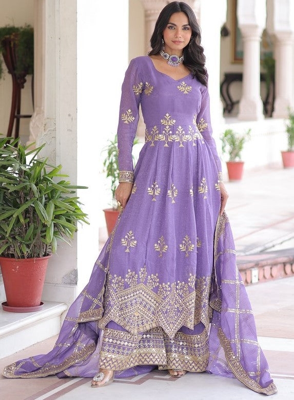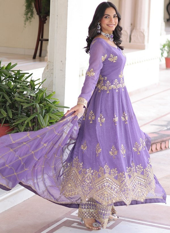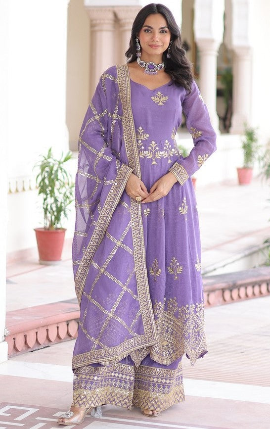 Ideal Purple Color Crunchy Fabric Partywear Suit