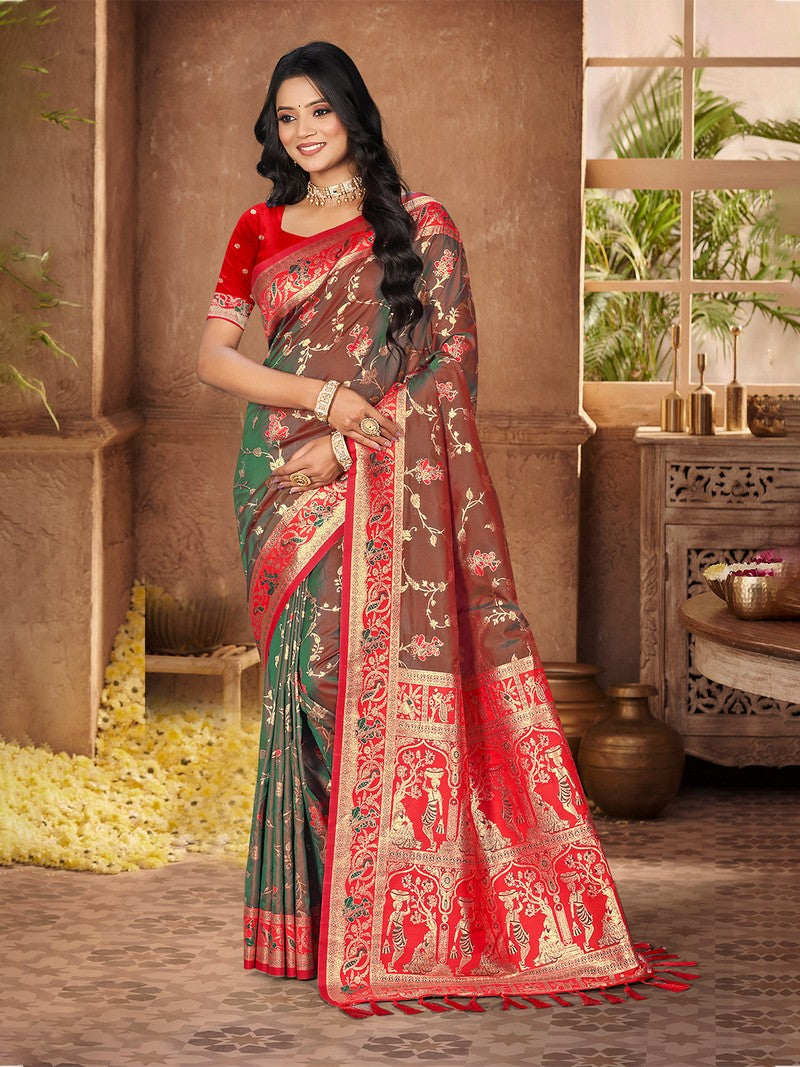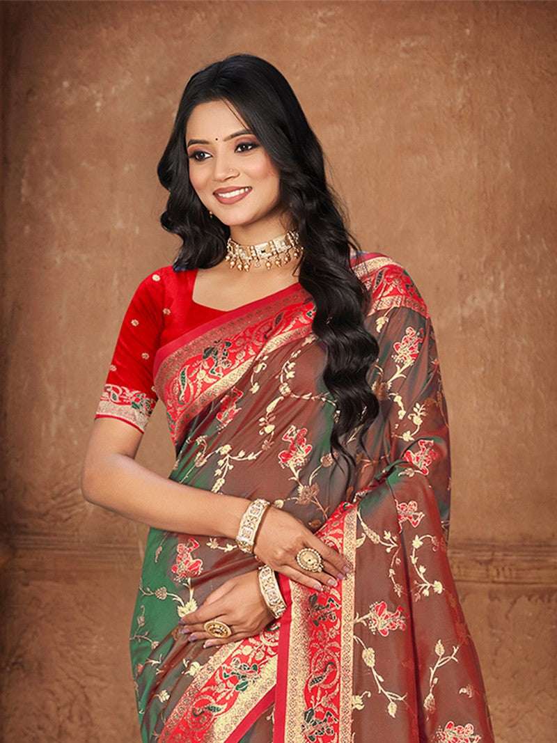 | Color | Saree Color - Green, Blouse Color - Red |