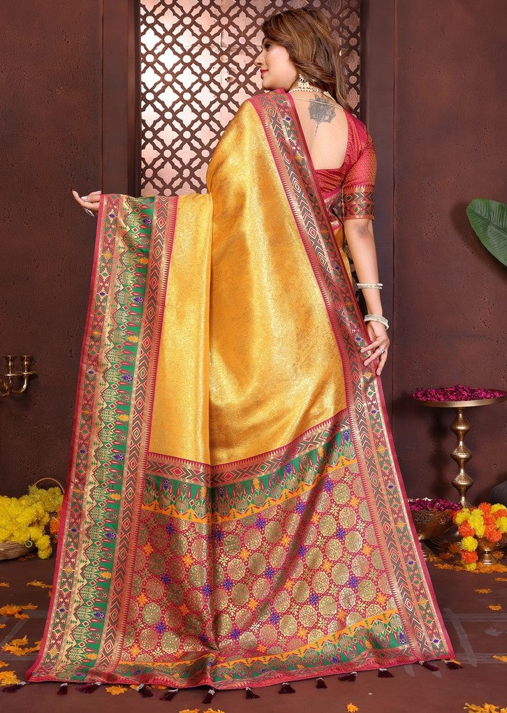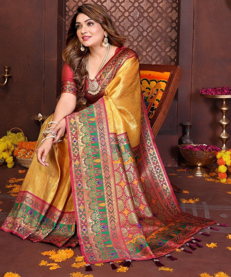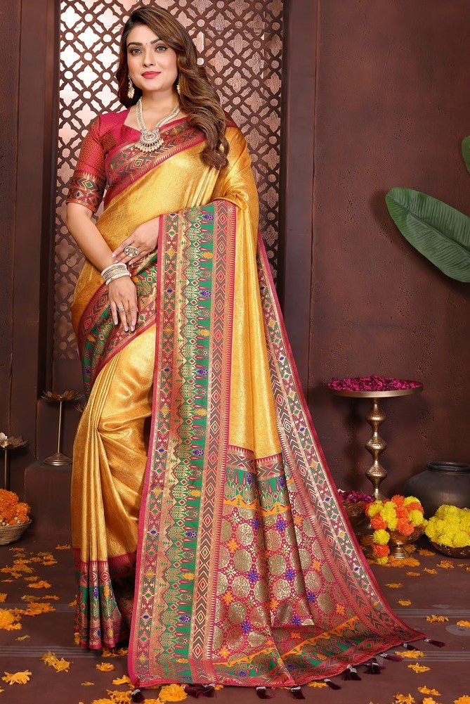 Amazing Mustard Color Banarasi Fabric Partywear Saree