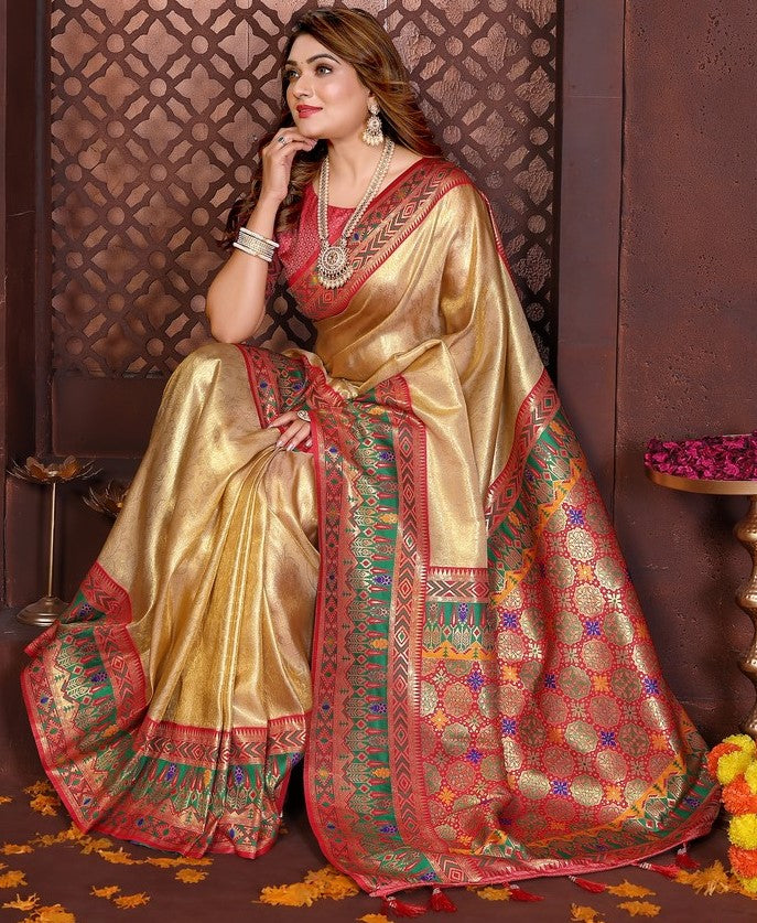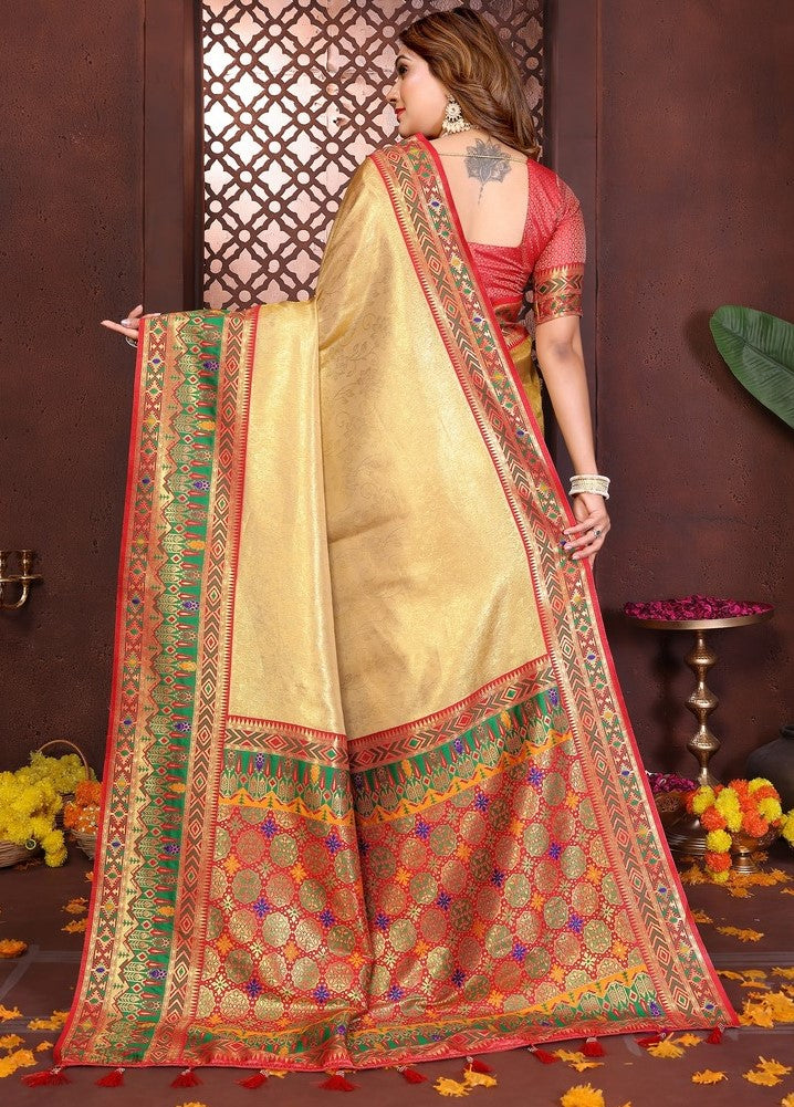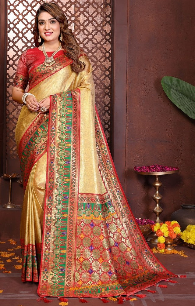 | Fabric | Saree Fabric - Banarasi Tissue Silk, Blouse Fabric - Banarasi Tissue Silk |
