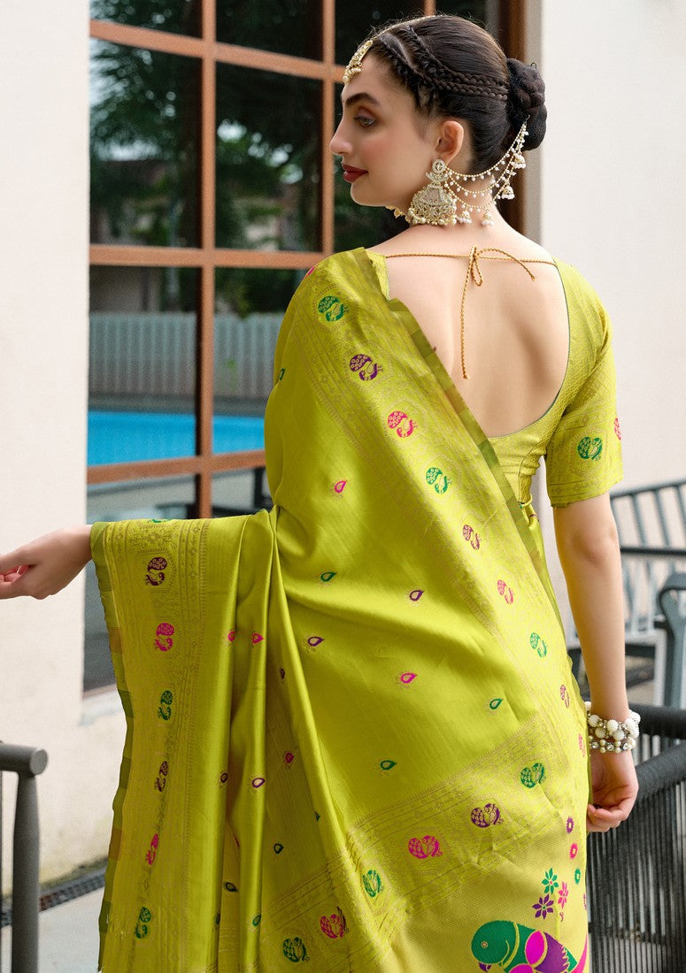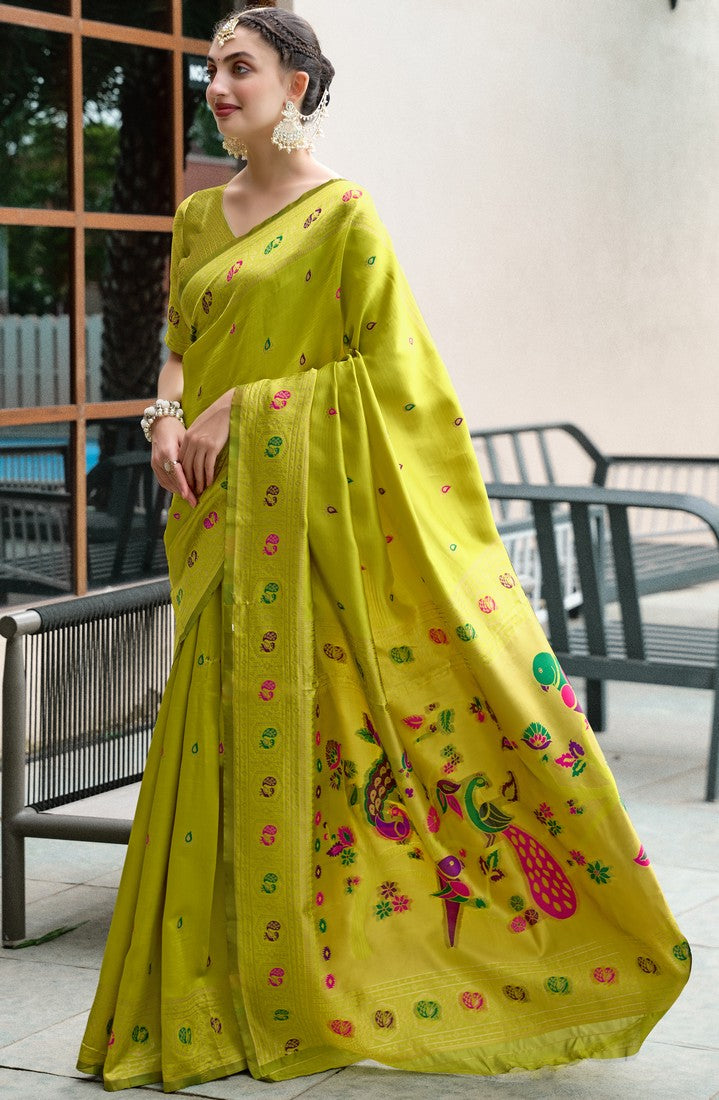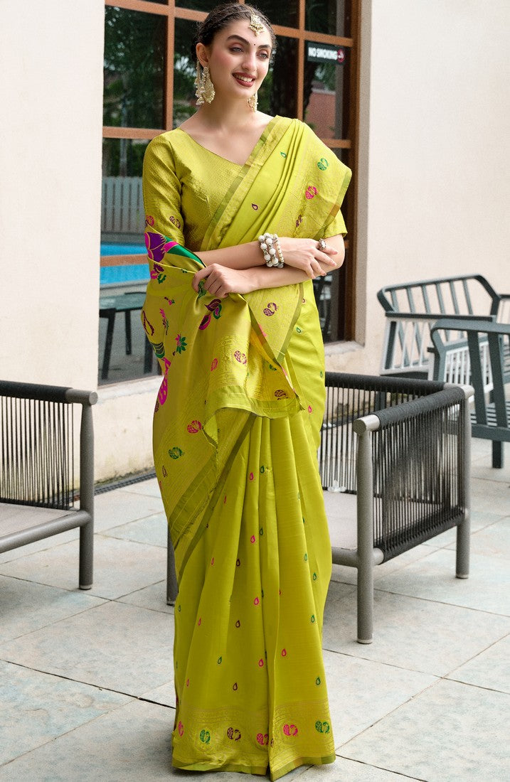 Beautiful Green Color Silk Fabric Partywear Saree